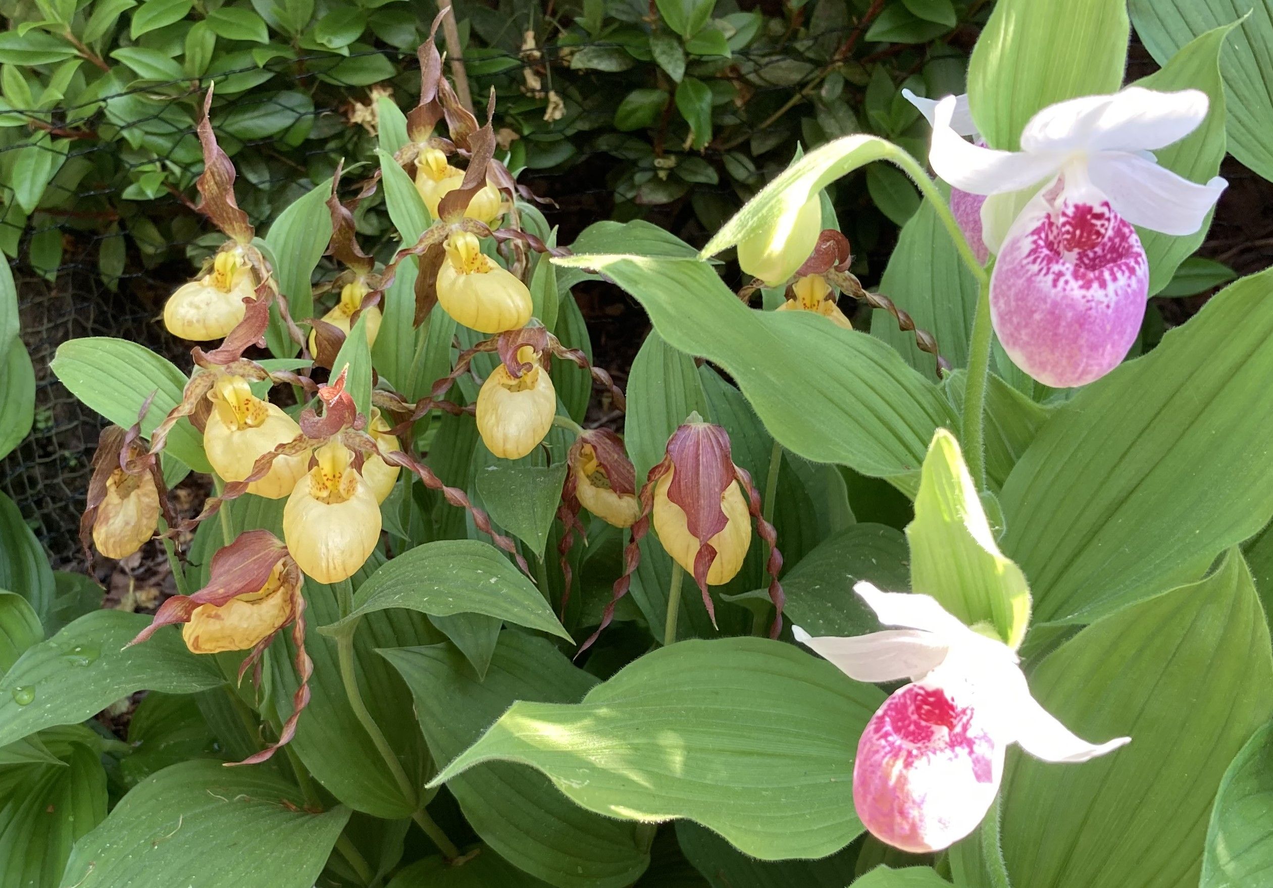 Der er skråning i flere etager opbygget af tørveklyner, som er tilplantet med Rhododendron. Rhododendronbed mod nord samt et surbundsbed bygget ind i skrænten med små alpine planter. Der er også en skråning med stenbed med diverse alpine planter samt små stedsegrønne træer og heksekoste. Haven rummer bl.a. vandbassin med vandløb, skovbed med Trillium og meget mere. Der er plantesalg