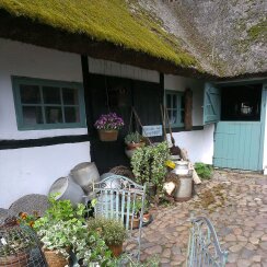Gammel bondegård fra 1790 med borstensbelagt gårdsplads. Gamle træer, næsten 100 forskellige urter, duftpelagonier og sjældne planter. Plantesalg og gårdbutik med fokus på liuvet på en gammel gård. Besøgshave hvor der altid gratis adgang og kaffe, samt saftevand. Hunde, høns og kaniner. Legehus og sandkasse til de mindste. Det helt rigtige sted til en picnic med familien for det er absolut tilladt at tage madpakke og drikkevarer med.. Stranden og dejlige Gilleleje er lige i nærheden.