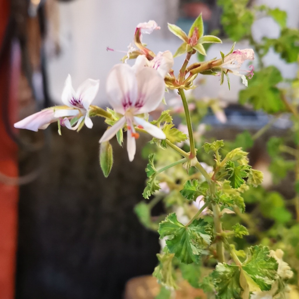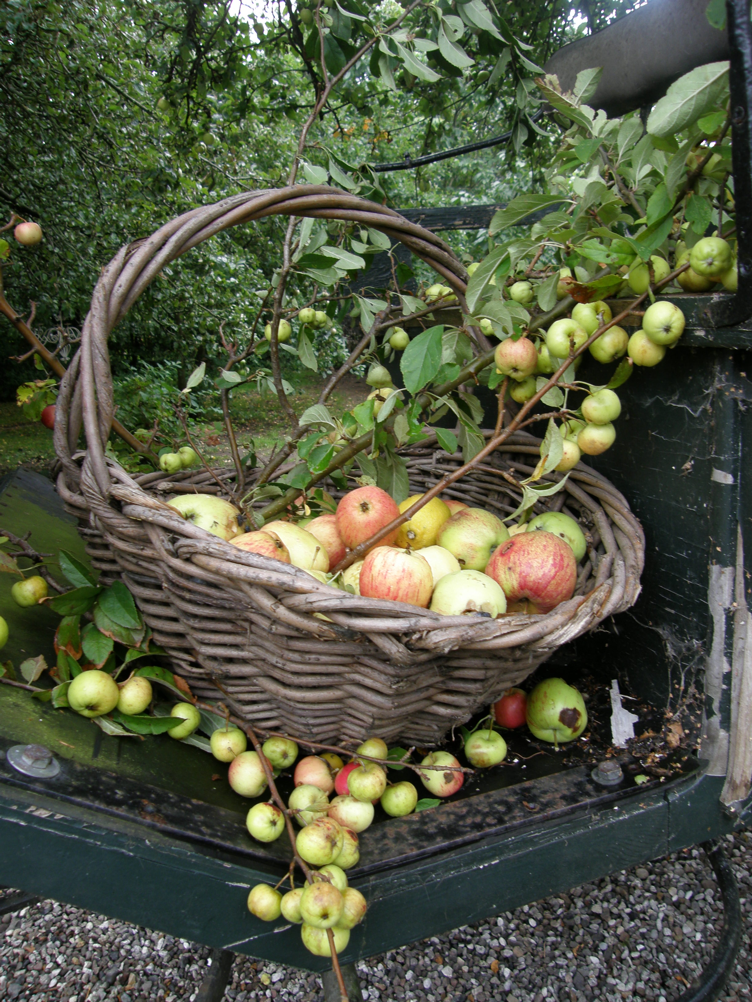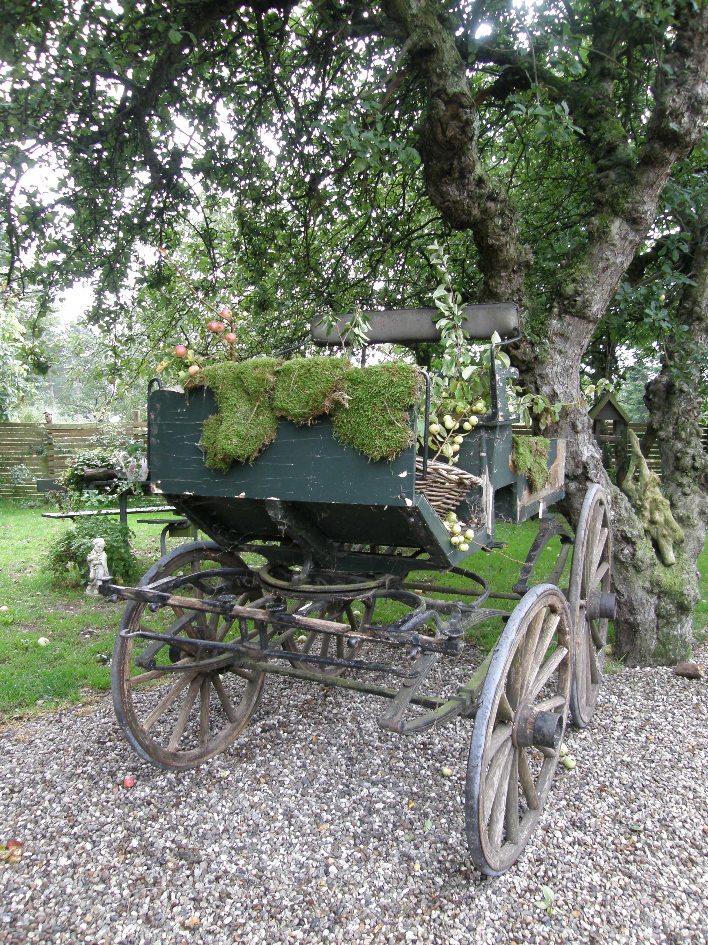 Bondegårdshave med små rum, mange urter, sjældenheder, duftpelagonier og gamle træer
