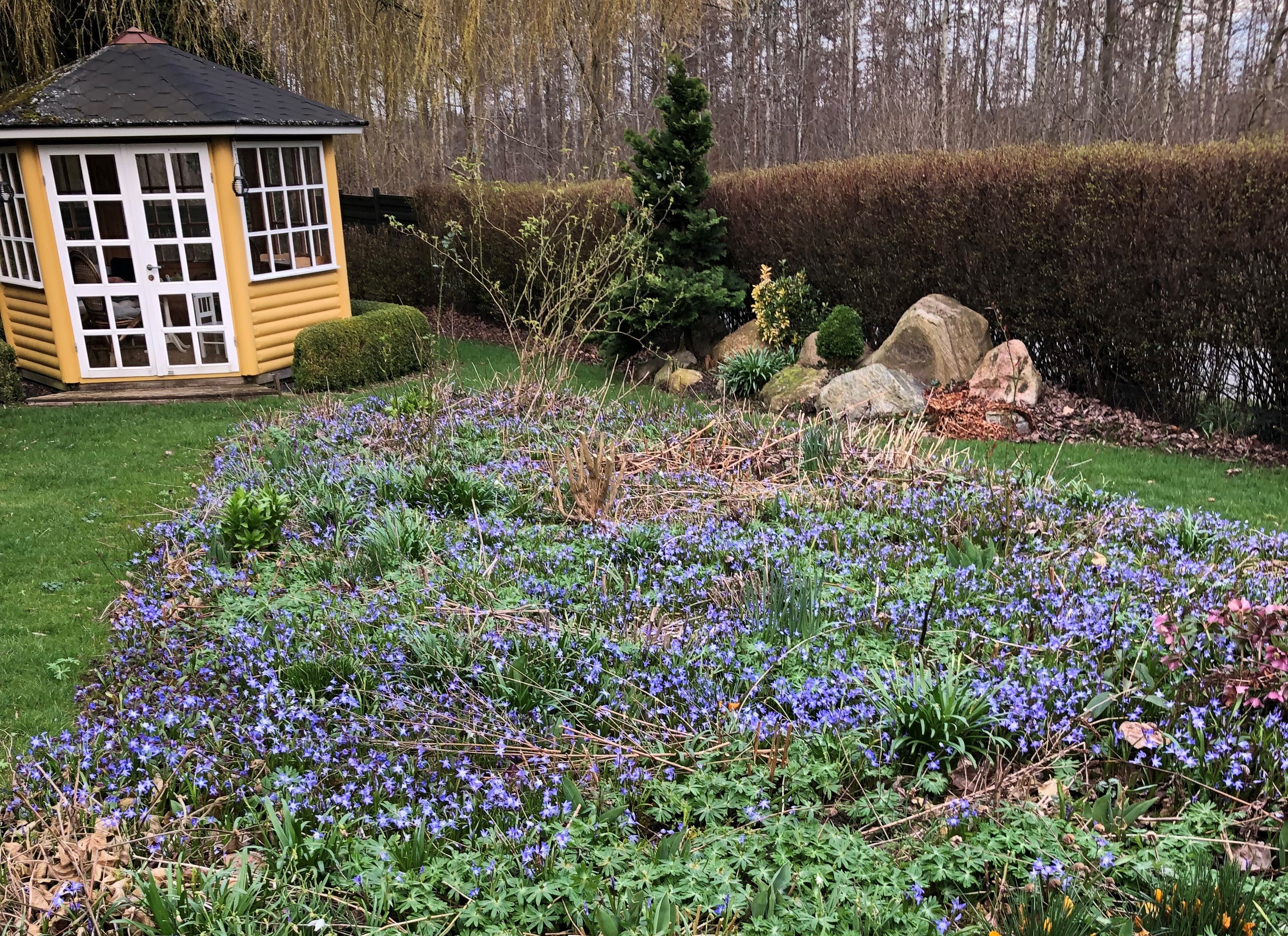 Haven er på ca 3800 m2, anlagt for ca 25 år siden af Kirsten og Leif, og er blevet tilplantet og passet af planteelskere, så her er mange planter og mange forskellige oplevelser. Der er noget at se på året rundt: om vinteren buske og træer med smuk bark og spændende grenbygning og forskellige stedsegrønne. Foråret starter med et væld af løgplanter og fortsætter med blomstrende buske, træer, clematis og meget mere. Om sommeren tager roser og hortensia over, og om efteråret er der smukke høstfarver i bl.a.. slyngplanterne.