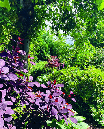 Havens overordnede ide er farvecirklens spænd mellem lime og blomme. Haven er kendt for mange spændende rum.