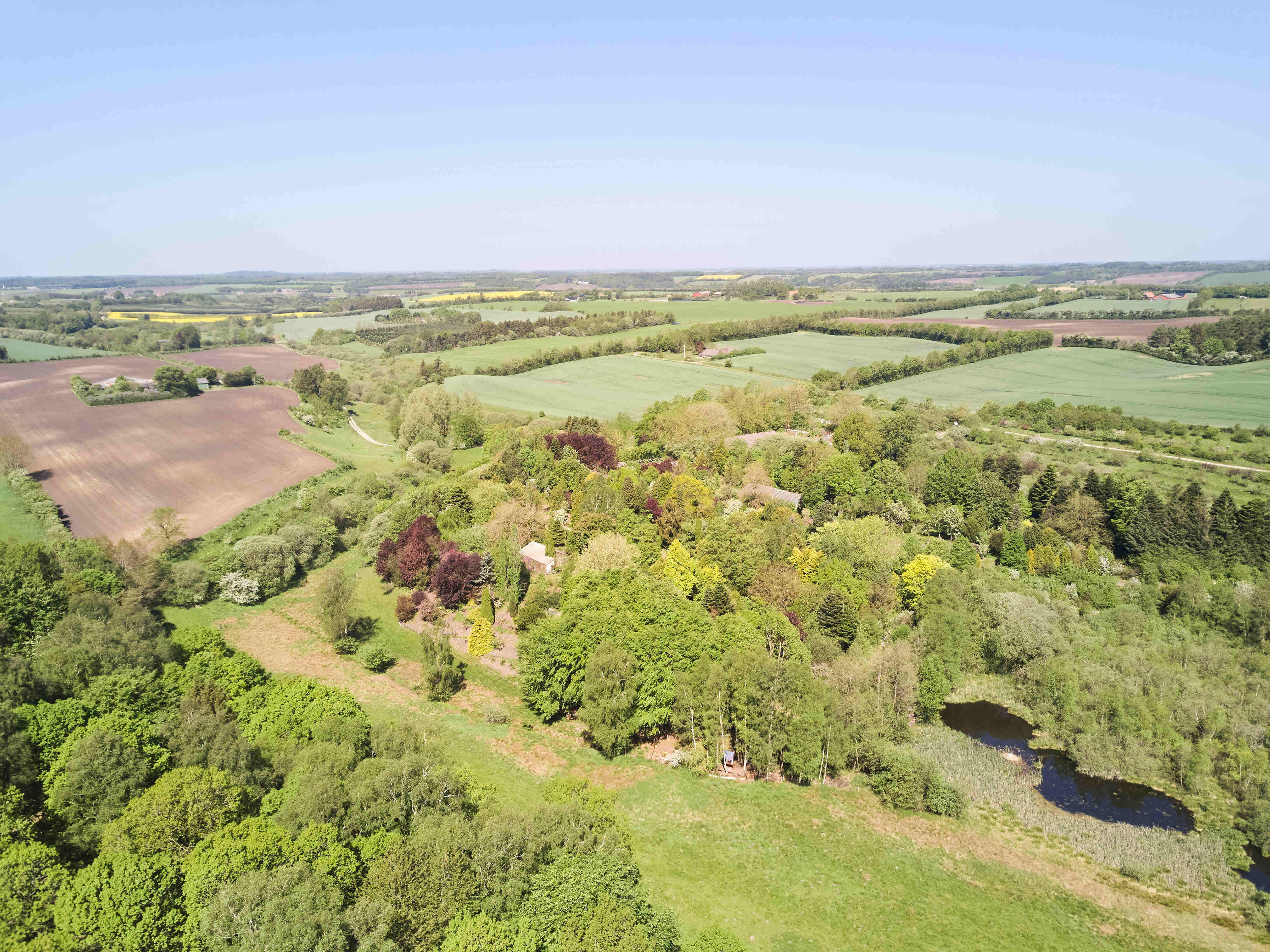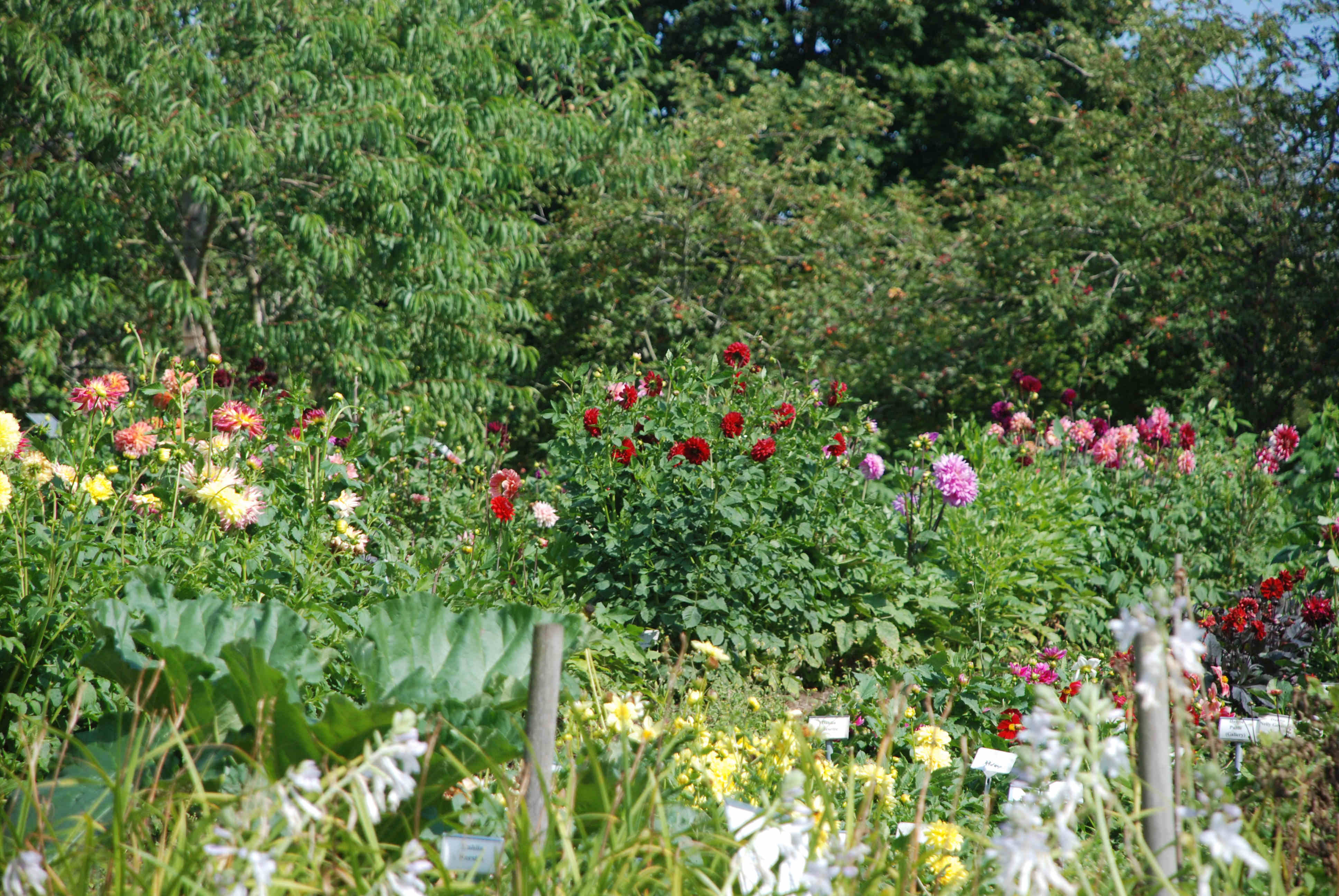 Blomstergården ligger i Tjele ådal. Blomster, træer og buske i 25.000 kvm park i naturskønt, kuperet terræn skabt af istid og smeltevand. Samlinger af træer, georginer, hosta og dagliljer.