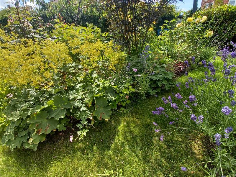 Havens mange bed er domineret af en gentagen rytme med tulipaner, akelejer og allium, der glider over i lodden løvefod, sankthansurt, staudemargurit, høstanemone, læge- og krydderurter samt havens ca. 4o forskellige roser. Heriblandt findes mange forskellige stauder, spiselige blomster, hyld, figner, frugter og bær gennem den lange sæson, der slutter af med æblerne. Som den ene måned tager den anden skifter havens farver fra de hvide og sarte lyserøde med de tidlige helleborus og vintergækker til de orange dagsliljer og purpursolhat mod efterårets komme. En frodig og blomstrende have med rigt dyreliv og plads til alle på en af de mange skønne siddepladser.