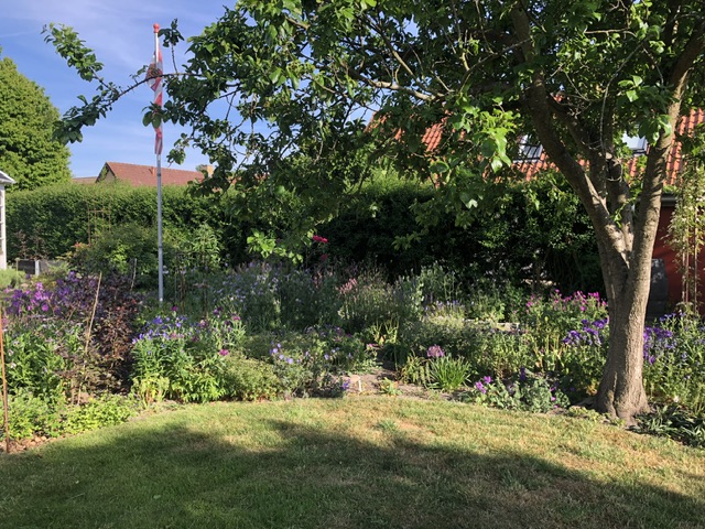 Delvist nyanlagt fra 2021 hvor jeg overtog haven, fjernede en del uønskede planter, som havde taget over. Opstammede høje syrener, gav plæner og bede endelig form. Har plantet en del stauder, buske, træer, hæk og aflæggere fra min gamle have samt lavet mange stiklinger. Sat jernpavillon op med roser og klematis samt lavet 2 små søer.