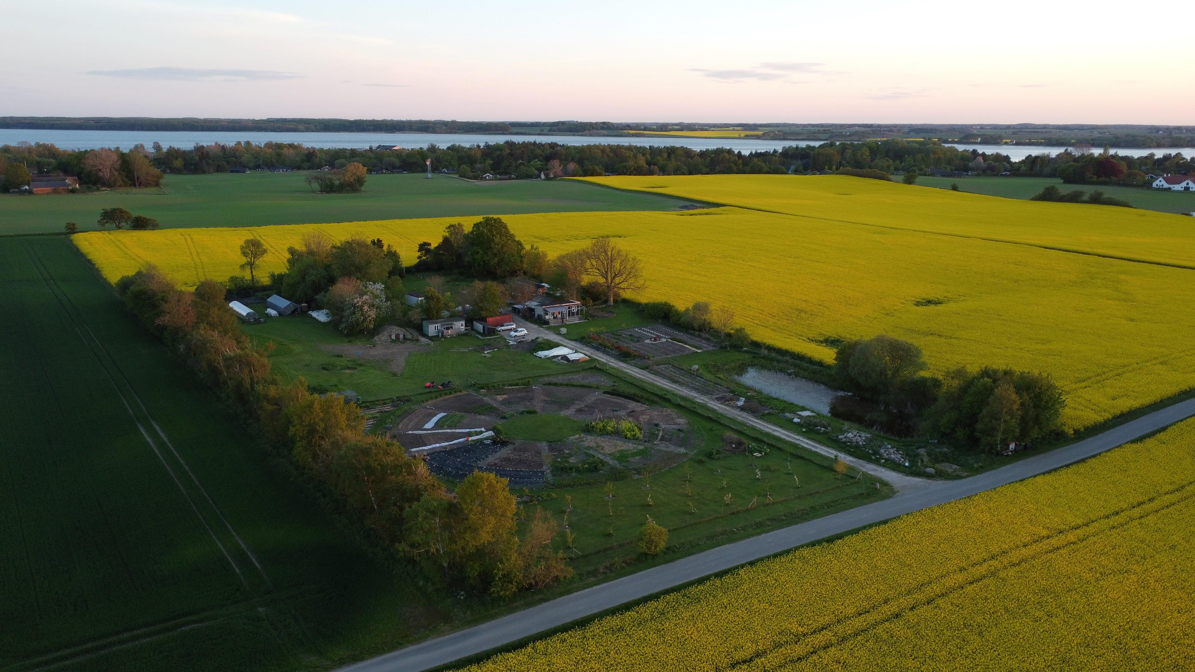 Vi har siden sommeren 2019 været i gang med at forvandle grunden til et refugium for både mennesker, planter og dyr, samtidig med at vi arbejder hen mod en høj grad af selvforsyning. Bl.a. har vi bygget en stor jordkælder til opbevaring af grønt hele vinteren. Køkkenhaven er cirkulær og ligger sammen med frugthaven på 2500 m2 bag hegn. Andre 400 m2 er udlagt til skærehave og grunden indeholder desuden sø, et 250 år gammelt kampestensomkranset vandingshul, hindbærhave, vilde områder, drivhuse, gamle træer, biavl, hønsehold, løbeænder mm.