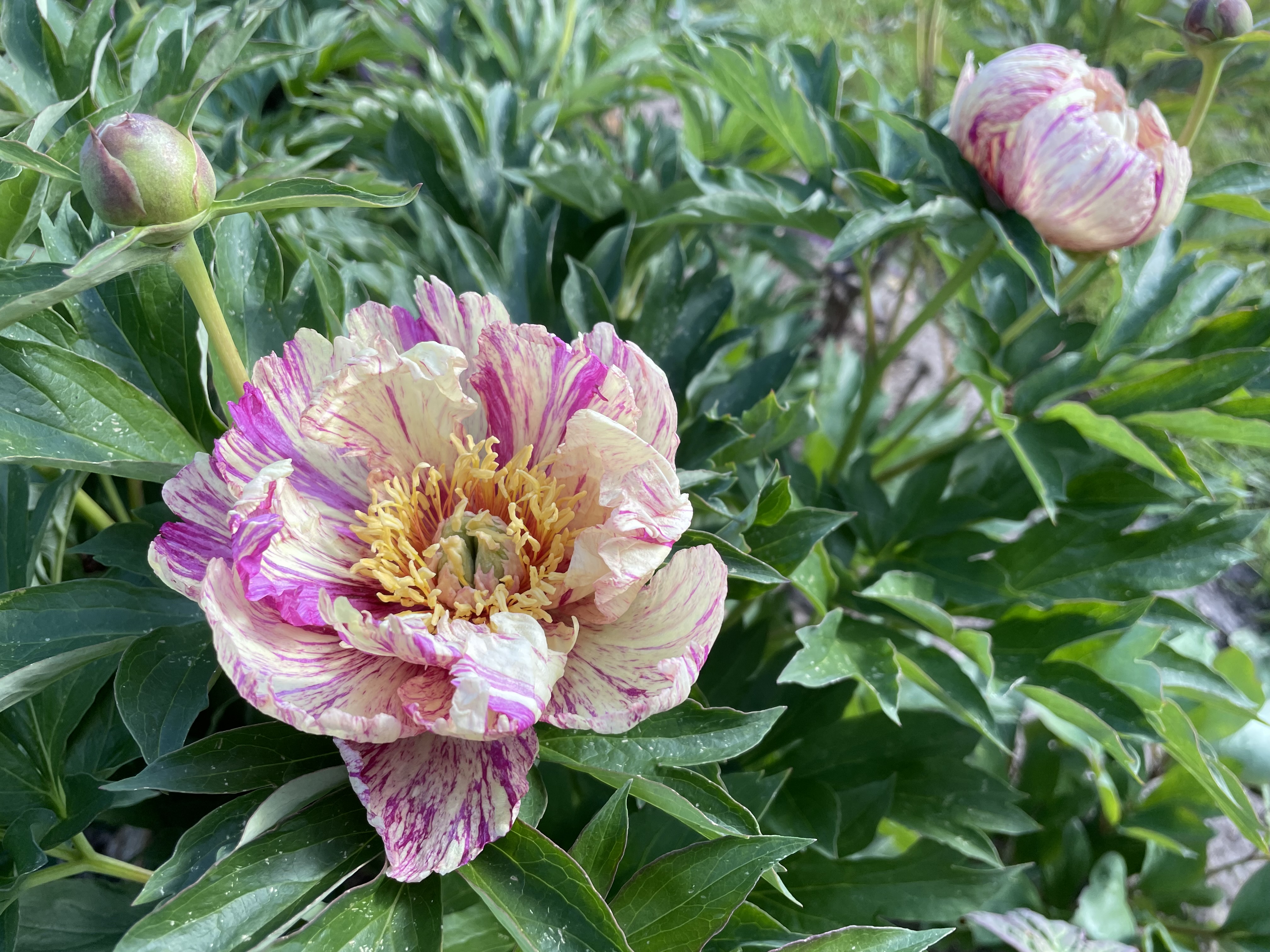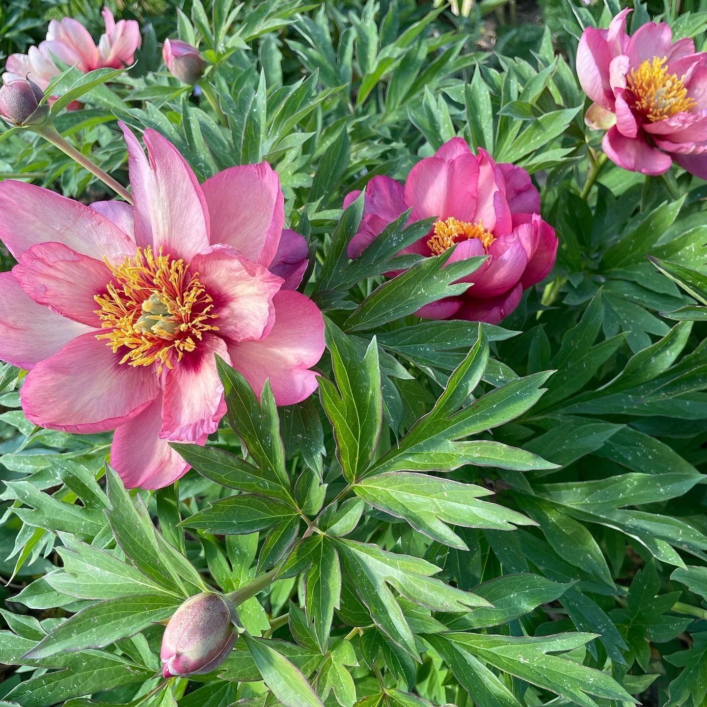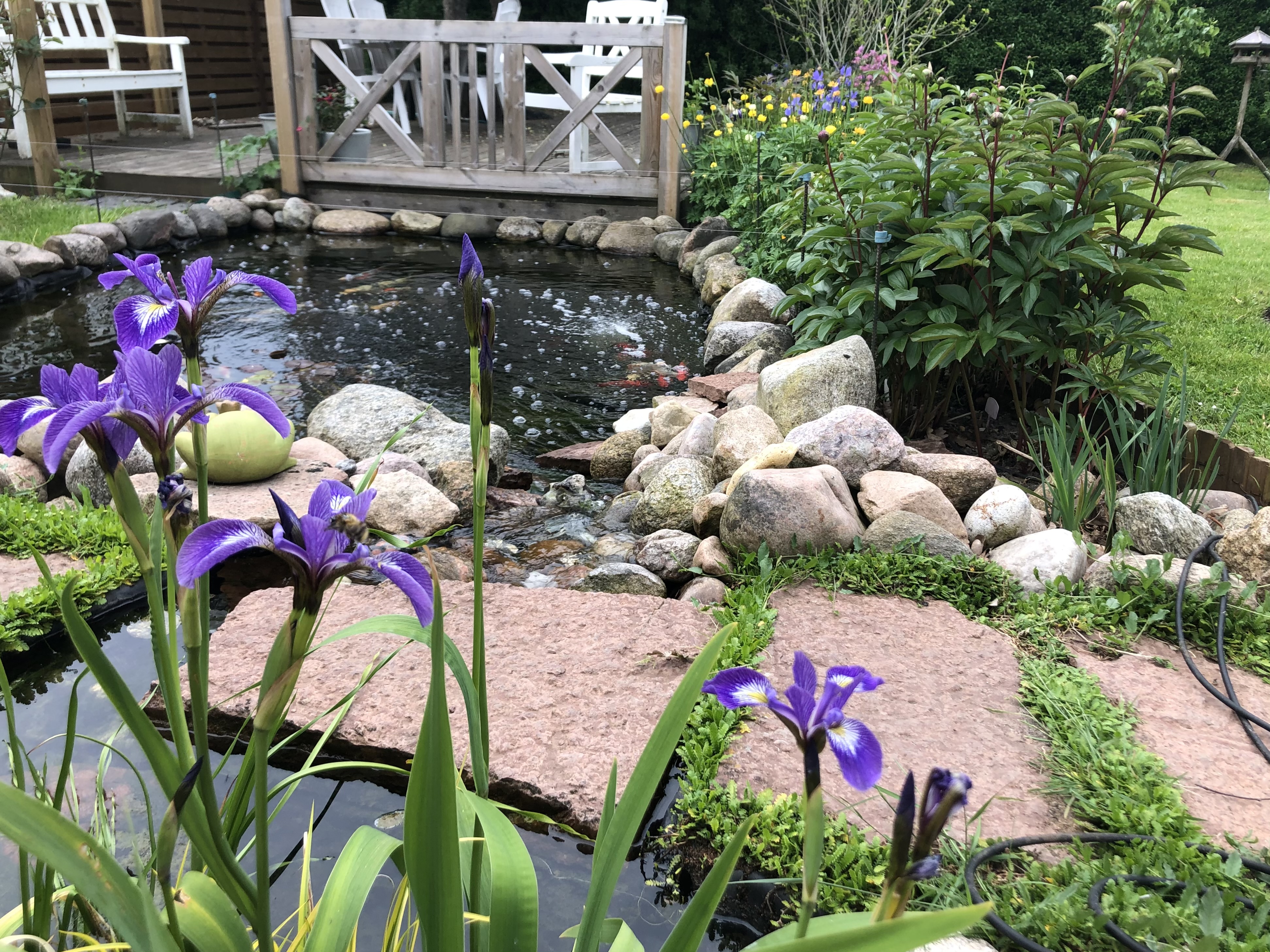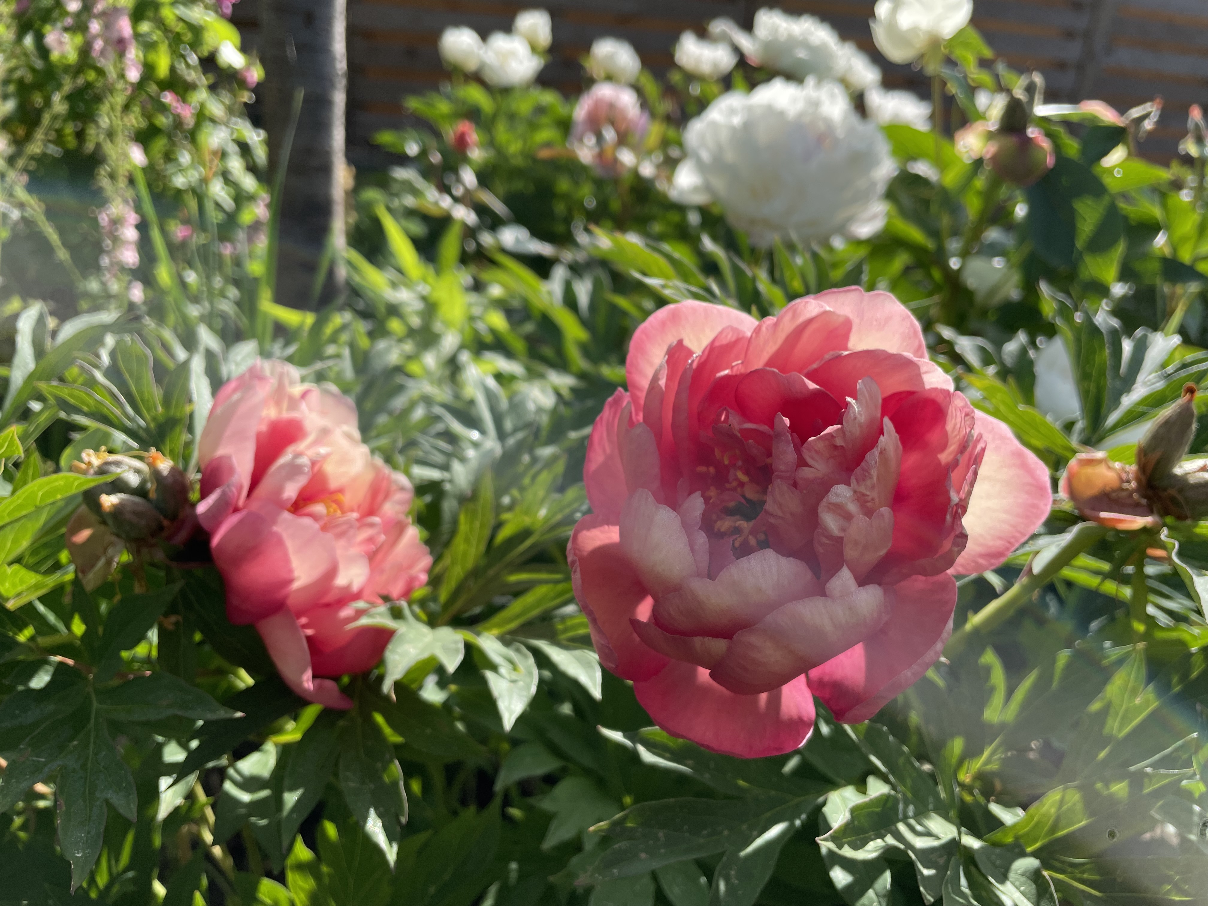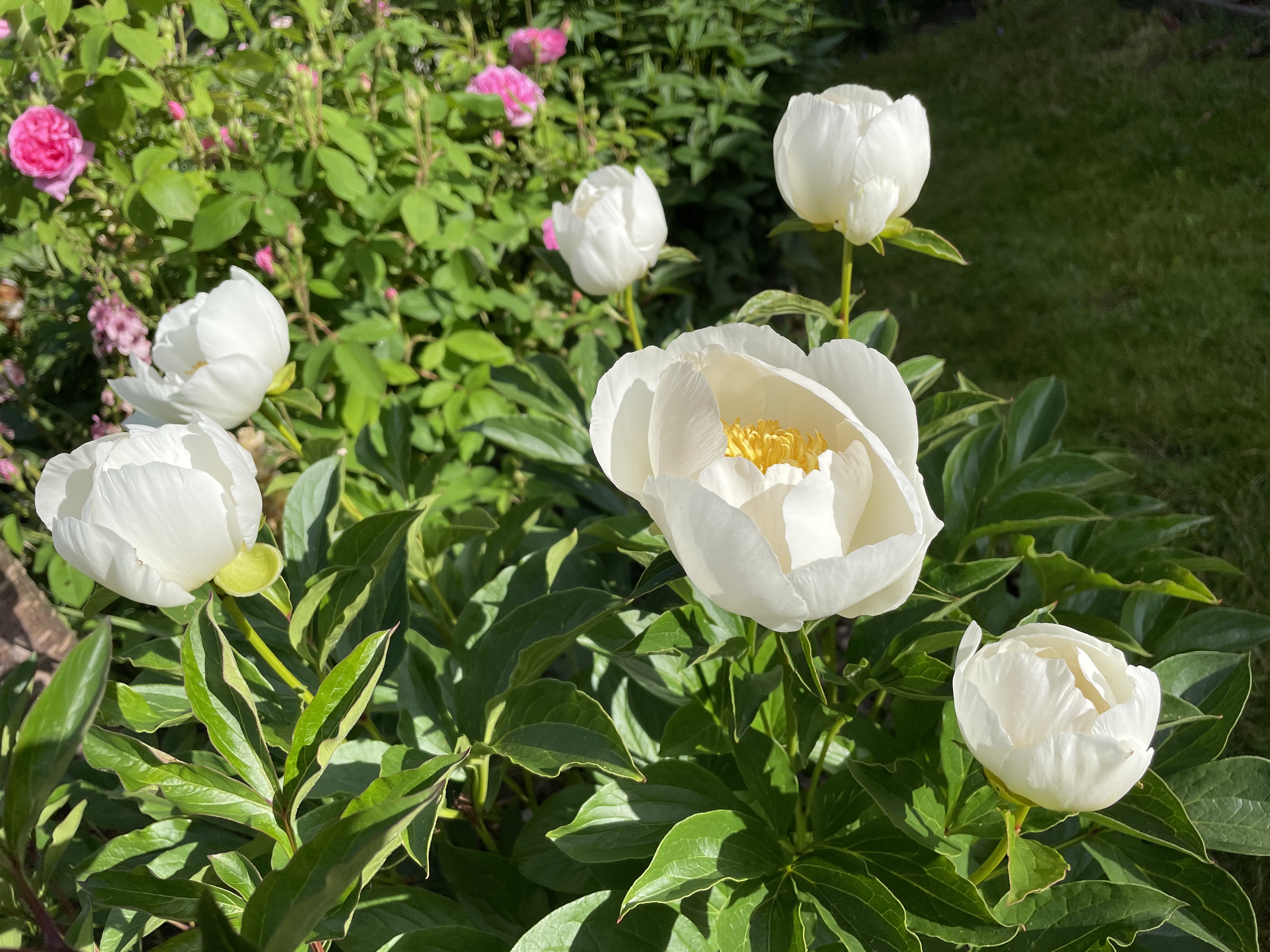 I vores have er der, foruden pæoner og flere specielle træer også roser, stauder, køkkenhave, drivhus, en havedam og en evig summen af kryb, kravl og alt mulig andet, for vi en familie med 3 børn, der spiller fodbold, gynger og leger i haven året rundt.