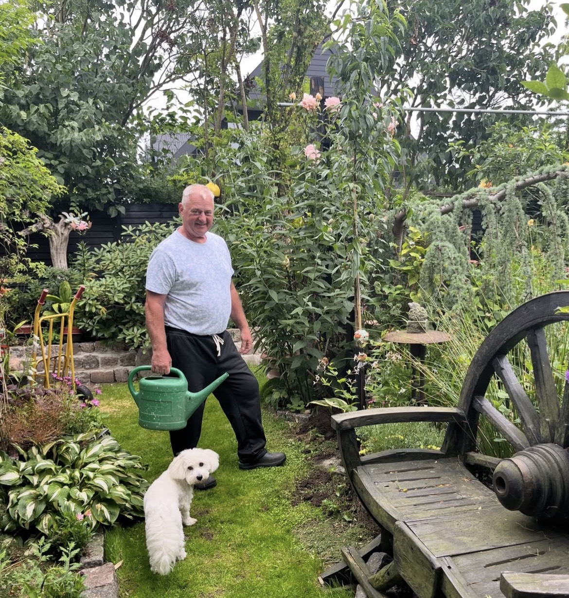 Haven har vi opbygget fra 2020 med mange haverum som starter med køkkenhave i højbede i forhaven og mange små frugttræer er fordelt i hele haven. Haven er fyldt med blomster, buske og havedam som tiltrækker mange insekter. H C Andersen lavet i keramik, sidder sammen med nogle af hans eventyr rundt omkring i haven, hvilket giver haven et finurligt udtryk.