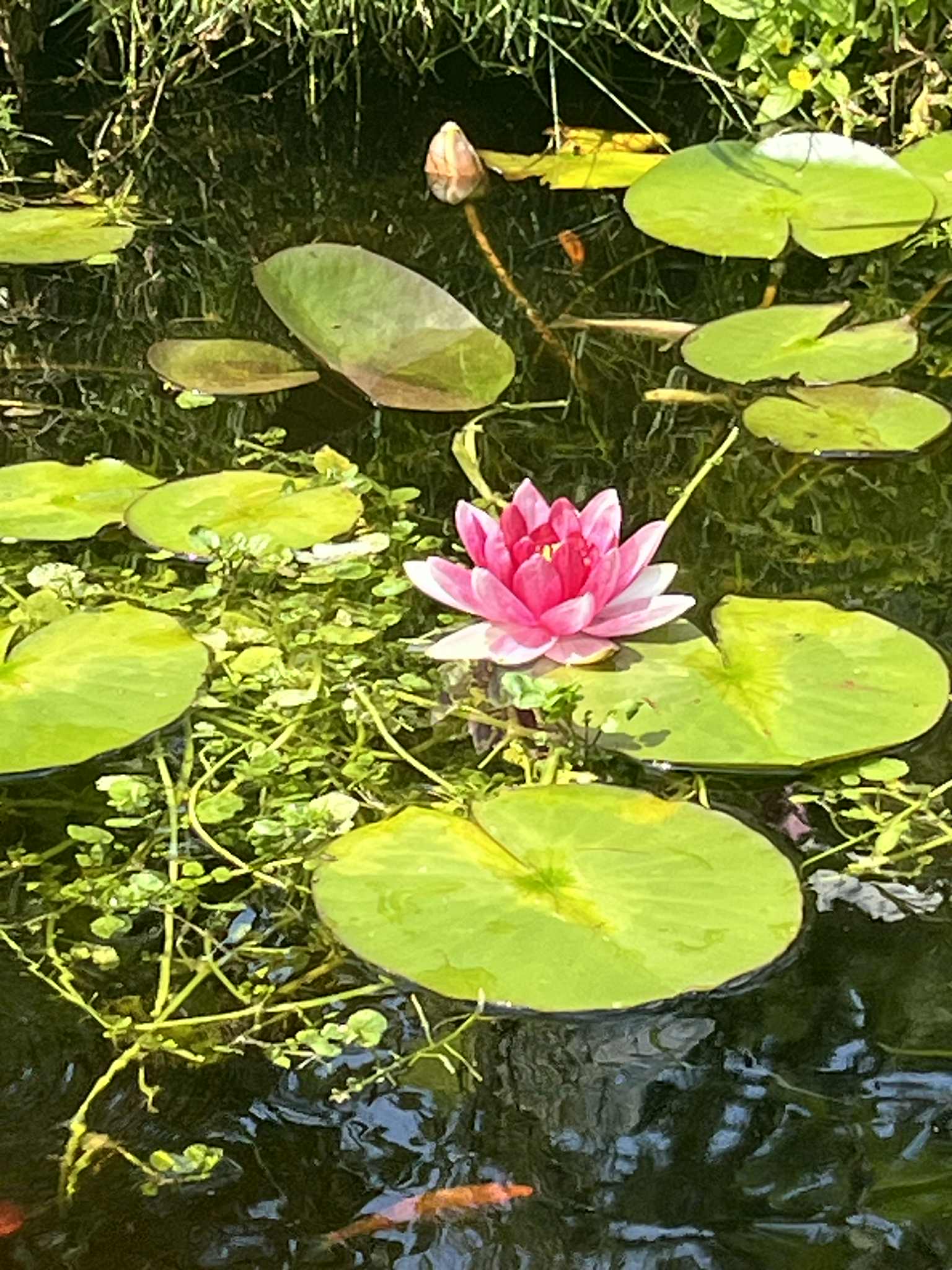 Romantisk & Eventyrlig have med fiskedam m koi karper, fugle, kunst og finurlig H C Andersens eventyr lavet i keramik.