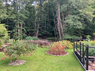Frodig og tætpakket forhave, der rummer bl.a. havehus, gårdhave, trampolin, stauder, krukker, frugttræer og krydderurter. Baghave med direkte adgang og udsigt til Sønderskoven og med plads til køkkenhave, frugttræer og bærbuske, udebad, bålplads, kaniner samt græsplæne til boldspil og leg.