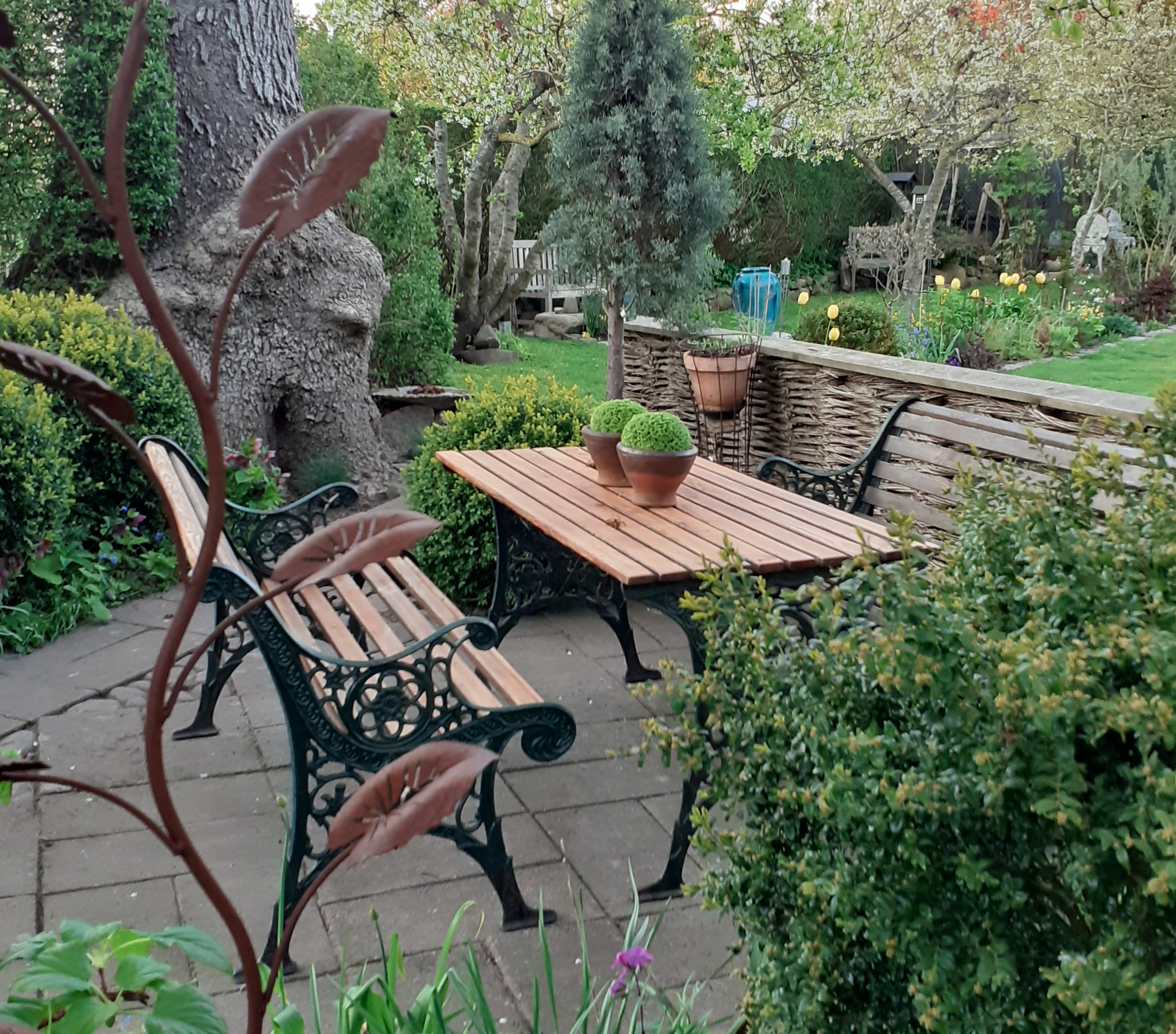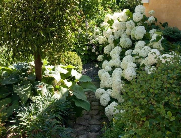Med huset liggende helt ud til vejen i det gamle Lynæs, åbenbarer der sig bag huset, en frodig, finurlig engelsk inspireret have . Lysthus bygget med de smukkeste gamle kirkevinduer, drivhus, lille bitte "sommerhus" i ungernes gamle legehus. Mange rum med hver deres indretning , masser af siddepladser, lige fra den simple sten til fine havemøbler under pergolaen og selvfølgelig masser af blomster....