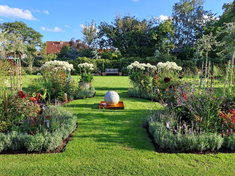Vi holder åbent 7/9. fra 11-17. Haven byder på geometriske former, symmetri og lange kik, bundet sammen af lave hække.