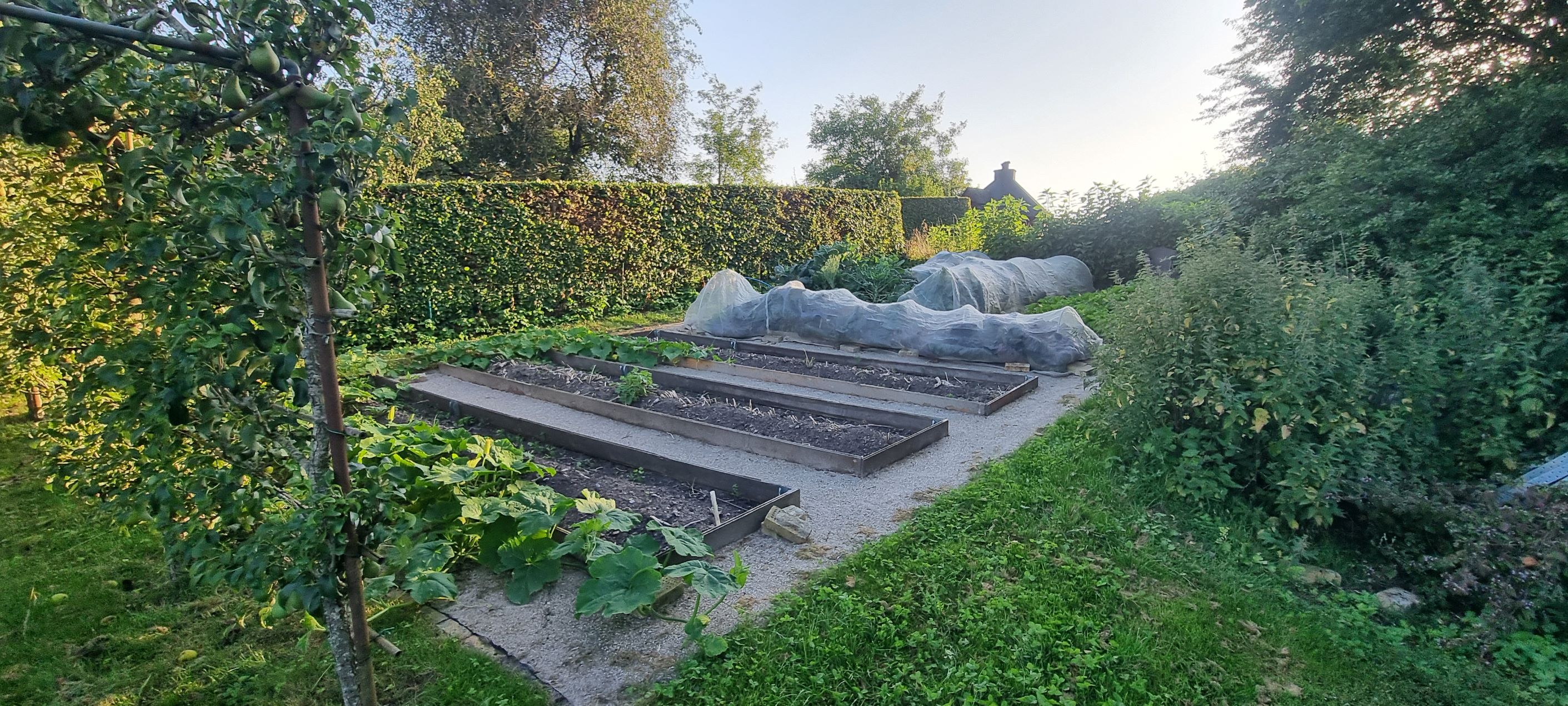 4500m2 inddelt i haverum med bøgehække. Hvert rum har sit tema fra lystrum til nyttehave og plads til natur.
