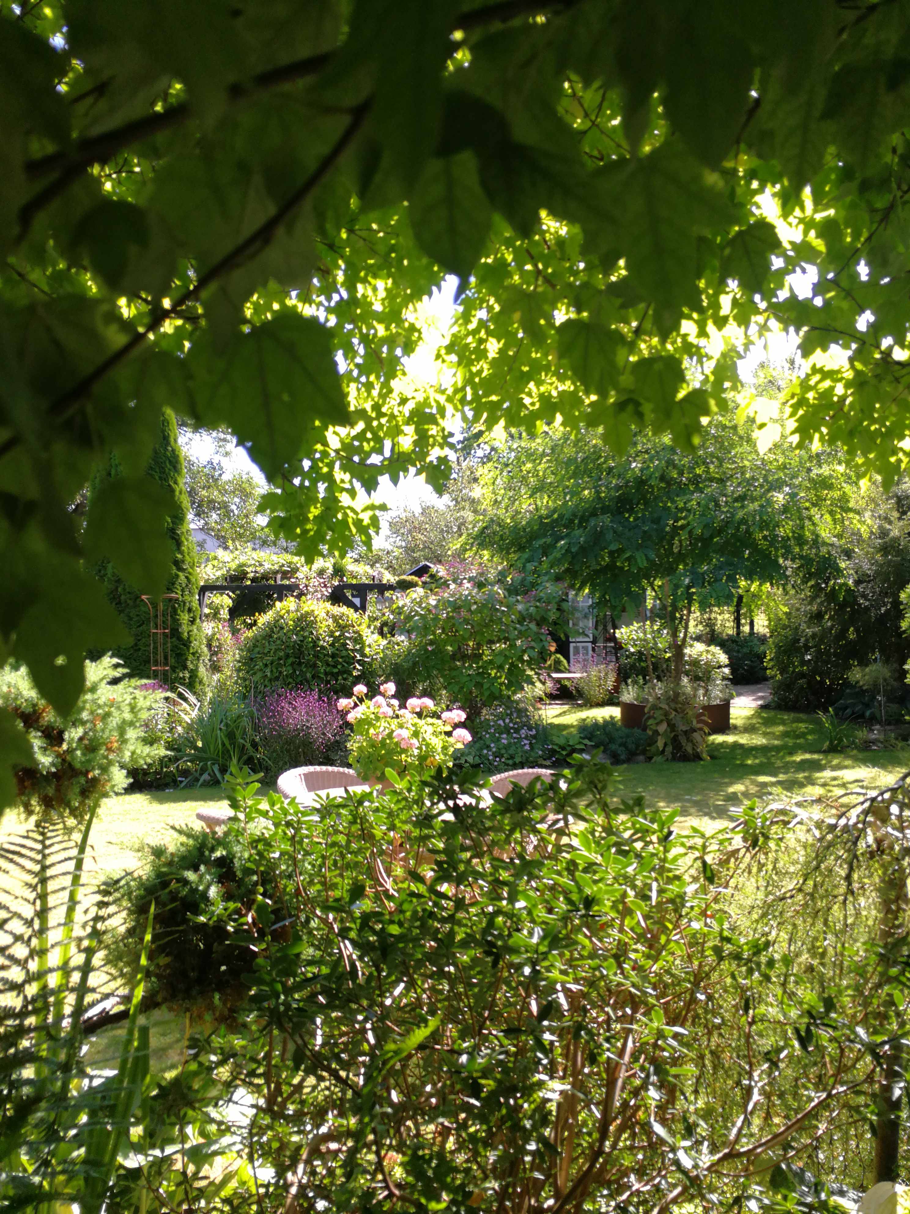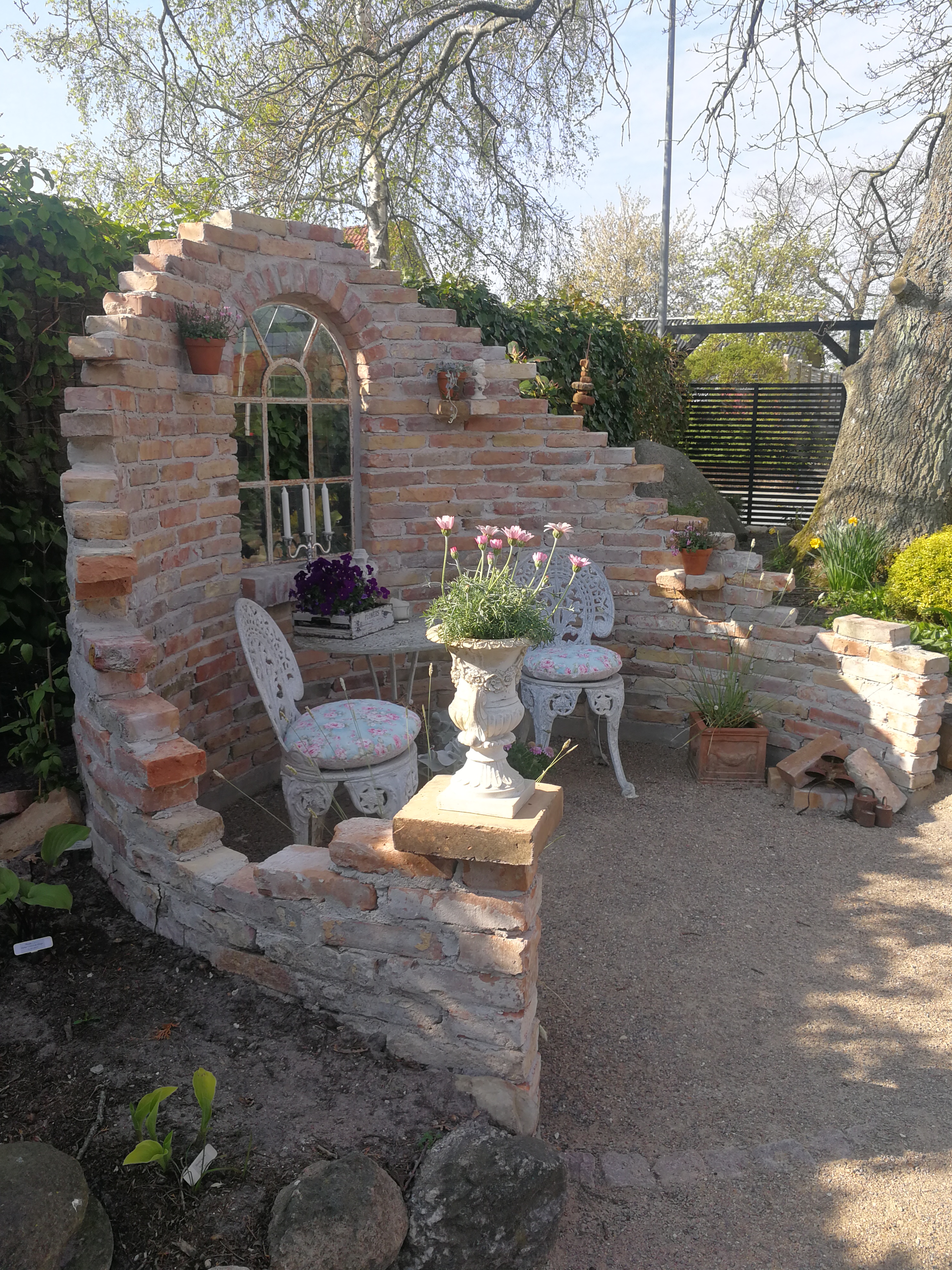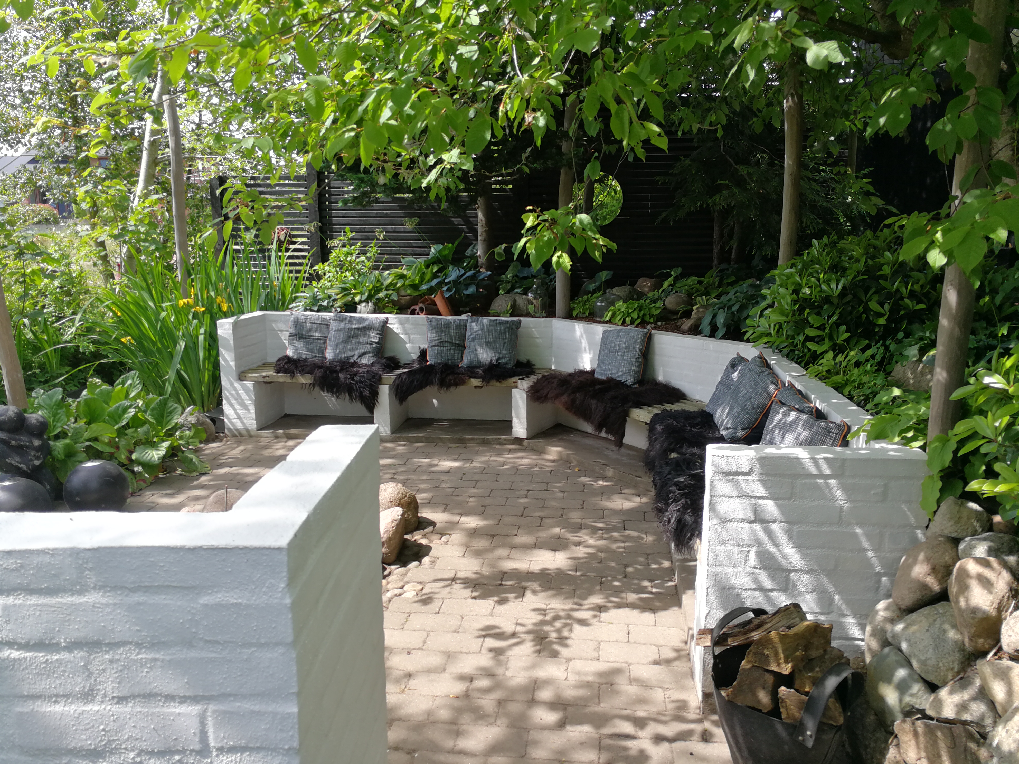Haven er gennem flere år forvandlet fra en kedelig villahave, med en stor græsplæne med træer og buske rundt om, til en skøn lille oase, der bare emmer af ro og fred, og forvandlingen fortsætter. Tonsvis af kampsten er kommet til, jord er flyttet rundt, der et tømret og muret, og der er plantet tusindvis af planter.