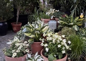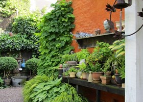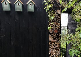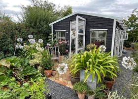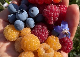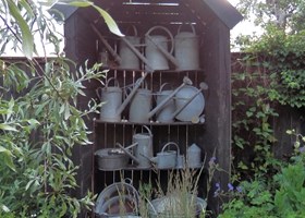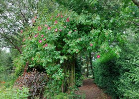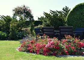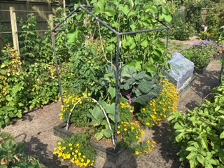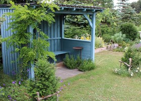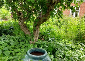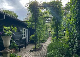 Frugttræer og frugtbuske pryder haven, mens en køkkenhave har pallerammer med et varieret udvalg af grønsager, krydderurter og spiselige blomster. Der afprøves med forskellige dyrkningsmetoder, bla. dyrkes kartofler i tang. Haven er delvis selvforsynende.