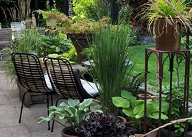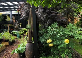 Parcelhushave med over 200 forskellige dahliaer.