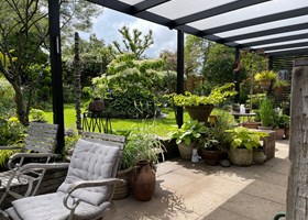 Vi ønskede både staudebede, drivhus, lidt bær og frugt, men vigtigst var ønsket om en masse farverige dahliaer.