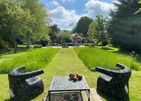 Vi ønskede både staudebede, drivhus, lidt bær og frugt, men vigtigst var ønsket om en masse farverige dahliaer.