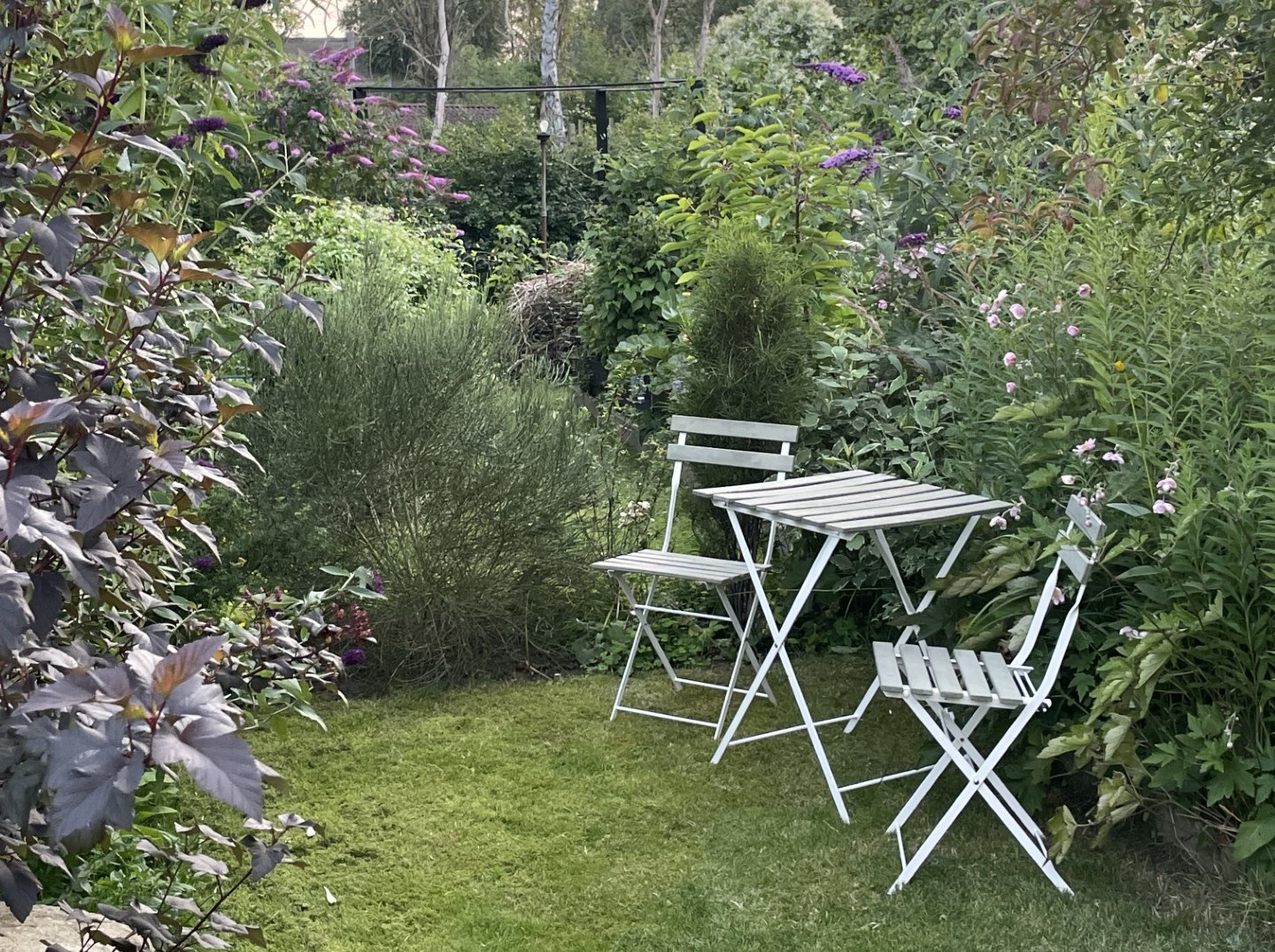 Vi har på 3 år fundet de gamle buske og træer frem, samt plantet en masse nyt - med fokus på biodiversitet, insekter og fugle. Da en passion for at frø- og stiklingeformere fylder en del, så kommer der flere og flere blomster og buske til - kort sagt er haven stadig under opbygning og forandring.