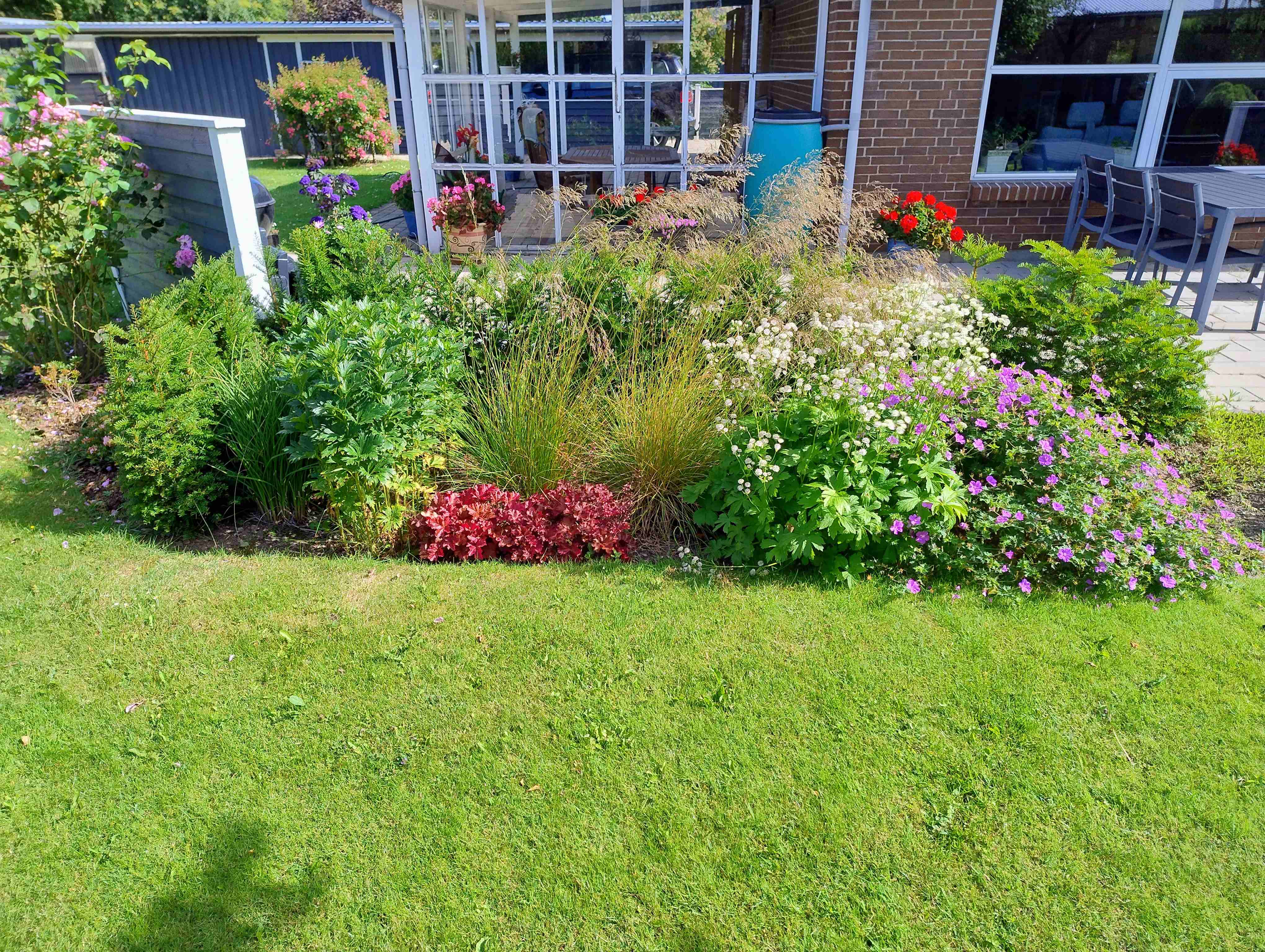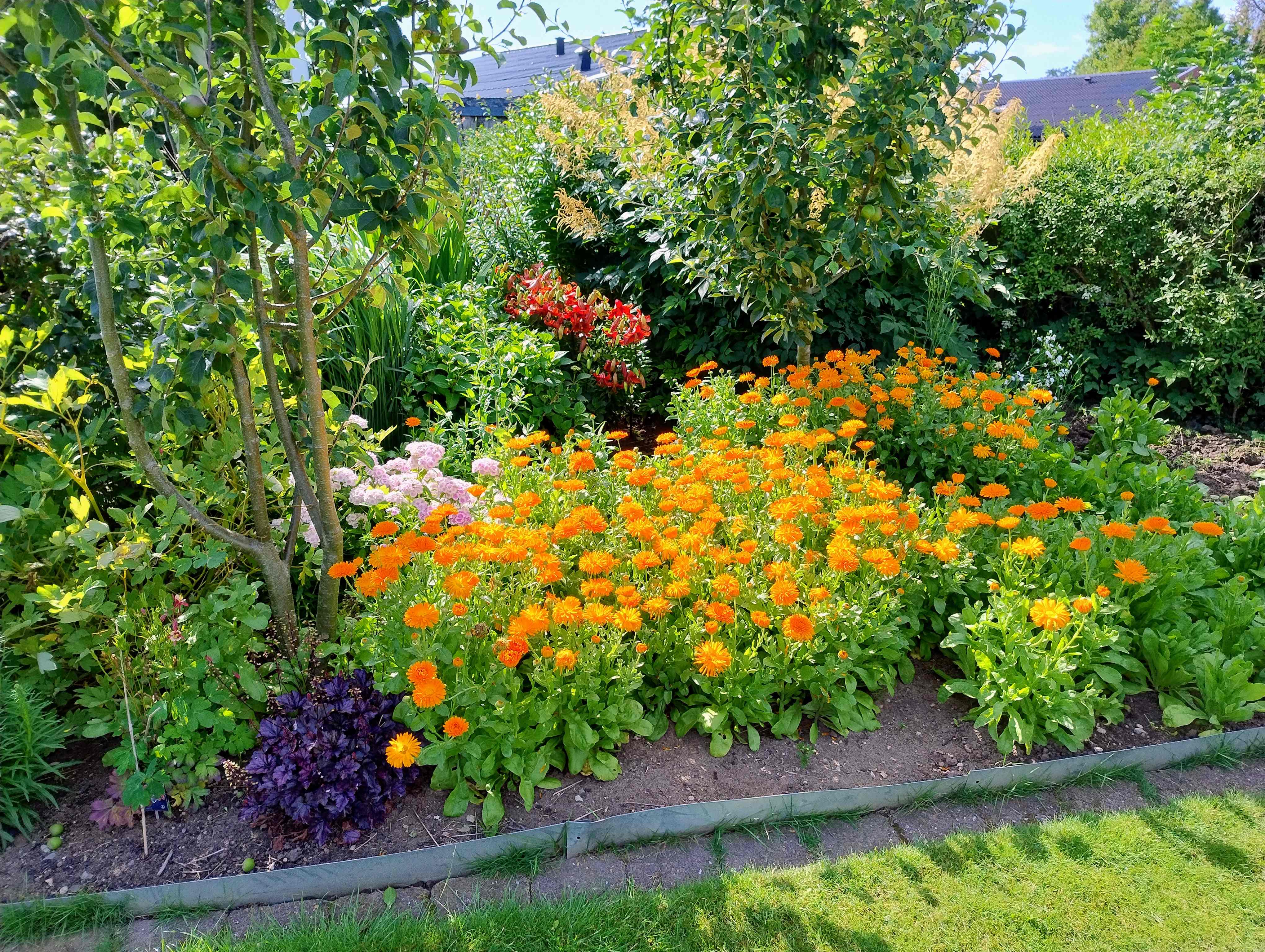 Gamle have, som stille og roligt ændres med nye staudebede, frugttræer og højbede. Plads til nye ideer og muligheder.