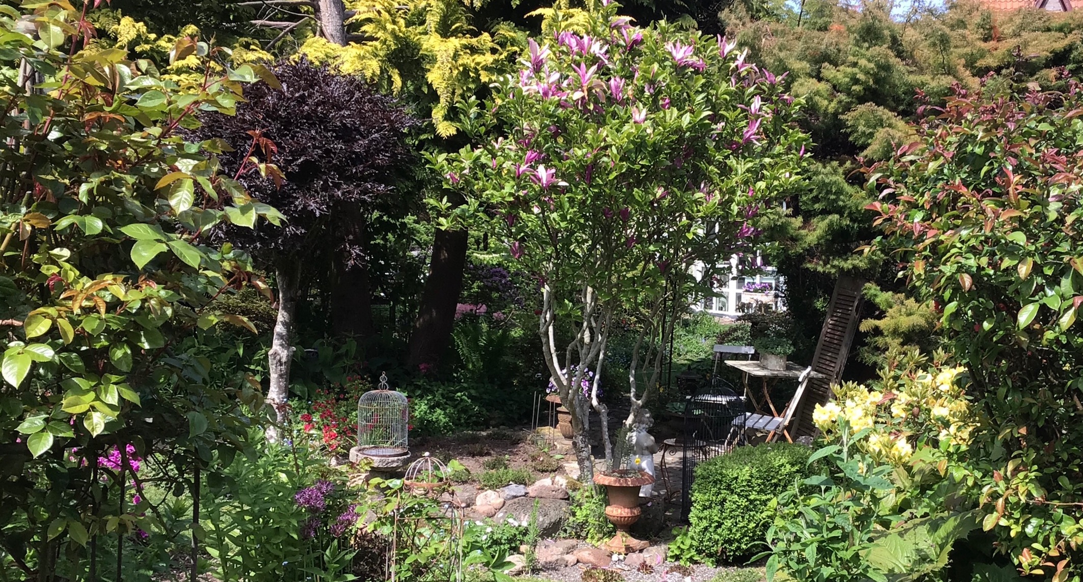 Her oplever du en spændende og romantisk have i Mårslet fyldt med mange forskellige planter, små træer, buske og Rhodondrendoner. 125 forskellige engelske duft og historiske roser fortryller oplevelsen. Haven er på ca. 1600m2 og inddelt i rum, således at det er ligesom at på oplevelse fra rum til rum. De mange haverum er forbundet med stier af enten græs eller bro-og pigsten og har bl.a. rosenpergola, lille høj med rosenhus i jern, the-pavillon, lille havedam og et lille engelsk væksthus. Rundt i haven er der små terrasser med siddepladser, hvor man kan sidde og nyde en kop kaffe og hvem ved, få ideer til egen have. På grunden findes en lille hyggelig Antik og Nostalgibutik og der er ligeledes mulighed for at erhverve sig planter.