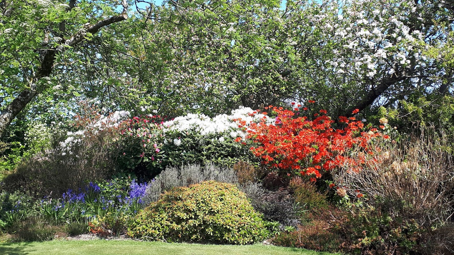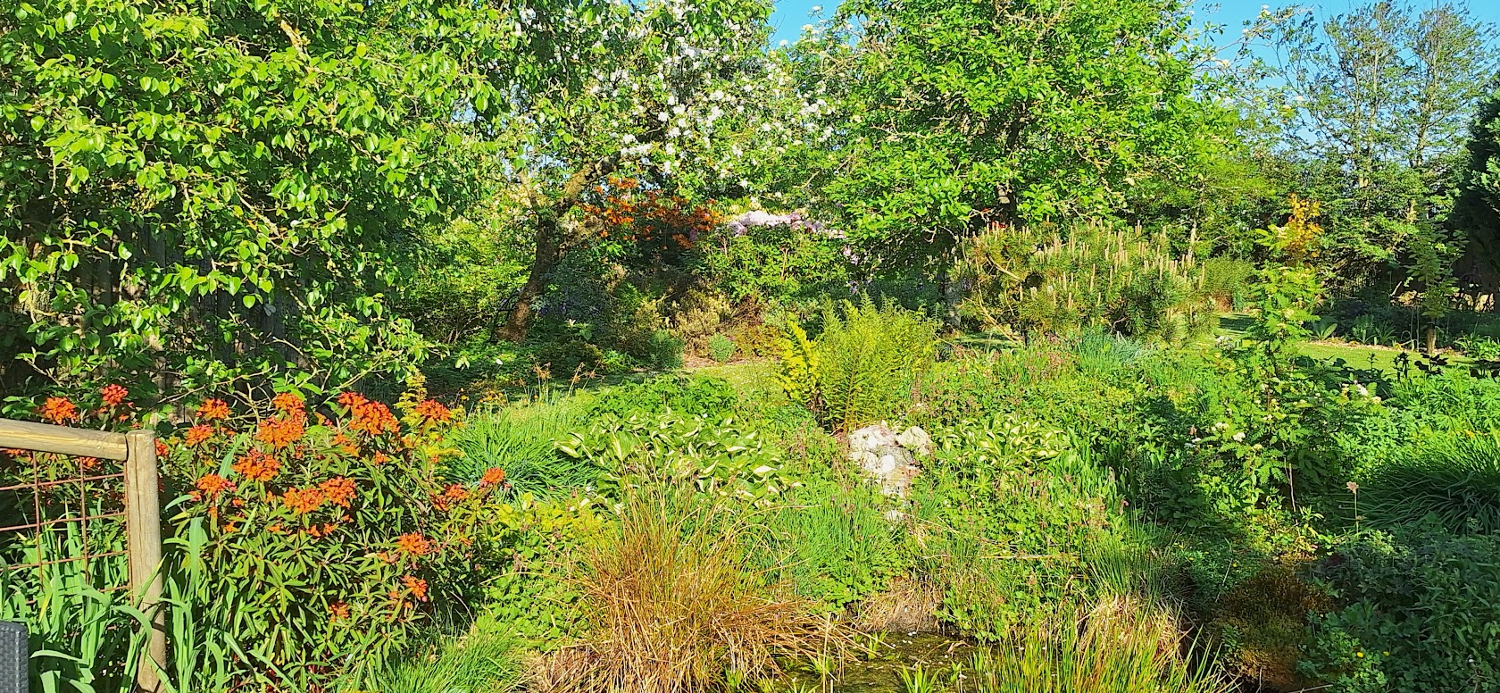 Havens mange bede snor sig mellem hinanden og skaber derved mange rum hvor man kan sidde og nyde livet. Der er rigtig mange stauder og træer man ikke ser så tit, og de giver sammen med bregner, hosta og græsser en have med mange overraskelser.