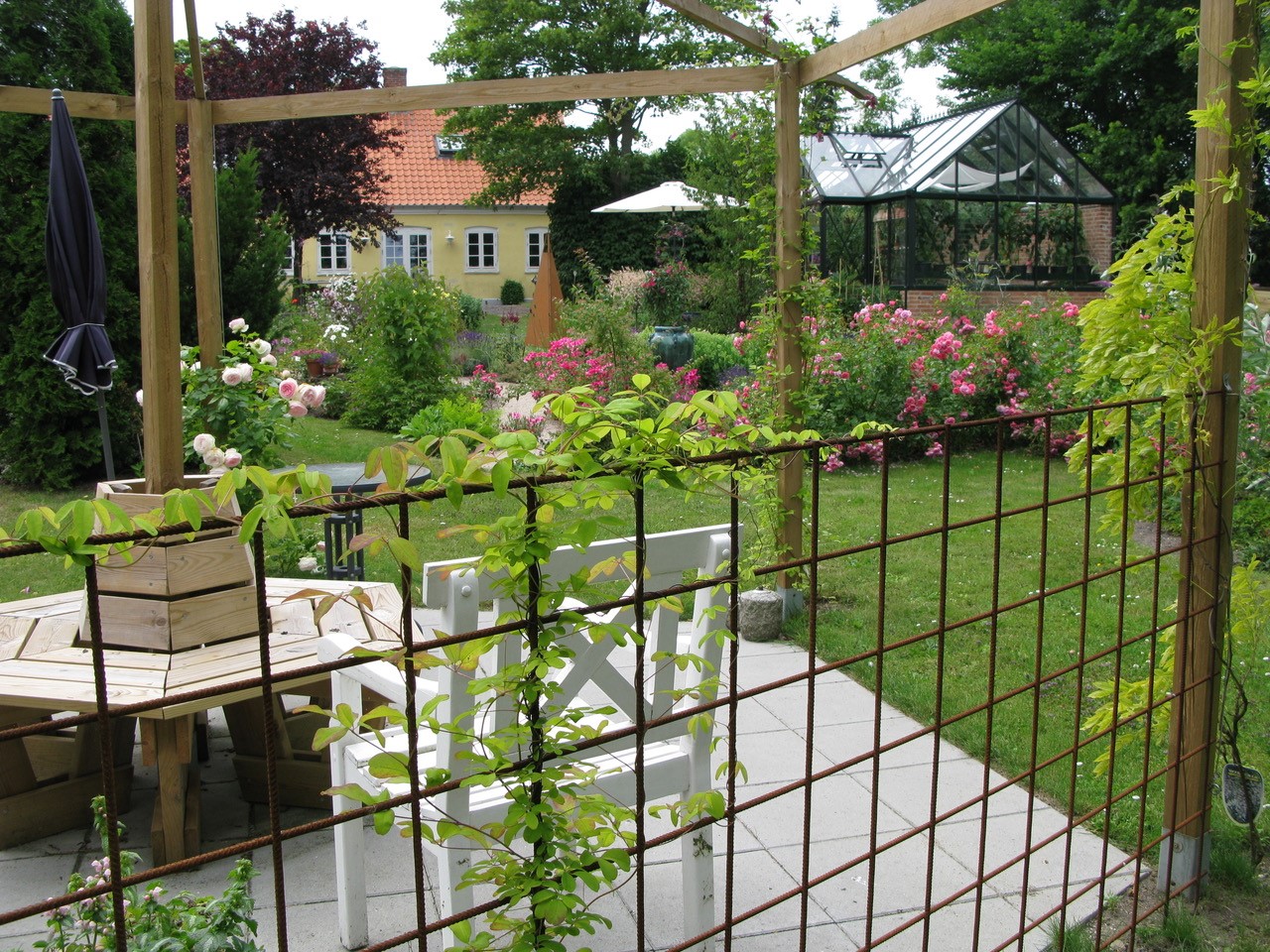 Kunstnerisk, frodig og charmerende landbohave på 3300 m2 grund med snoede stier, mange blomster og specielle buske. Vist i TV programmet "Havemagasinet: Den Åbne Have" på DK4. Beskrevet i "Haven" September 2022. Der er mange kroge, hvor man kan sidde og nyde blomster og fugle, som er effektive insekt-bekæmpere hos os. I centrum af haven er orangeriet, hvor vi dyrker peberfrugter, tomater og slyngplanter - og ind imellem holder kunstudstilling. Det meste af baghaven er anlagt efter etablering af jordvarmeanlæg i 2011, og al regnvand opsamles i faskiner og tanke, som har overløb til et stort beplantet regnbed. Åben efter aftale fra 15 maj til 15 september.