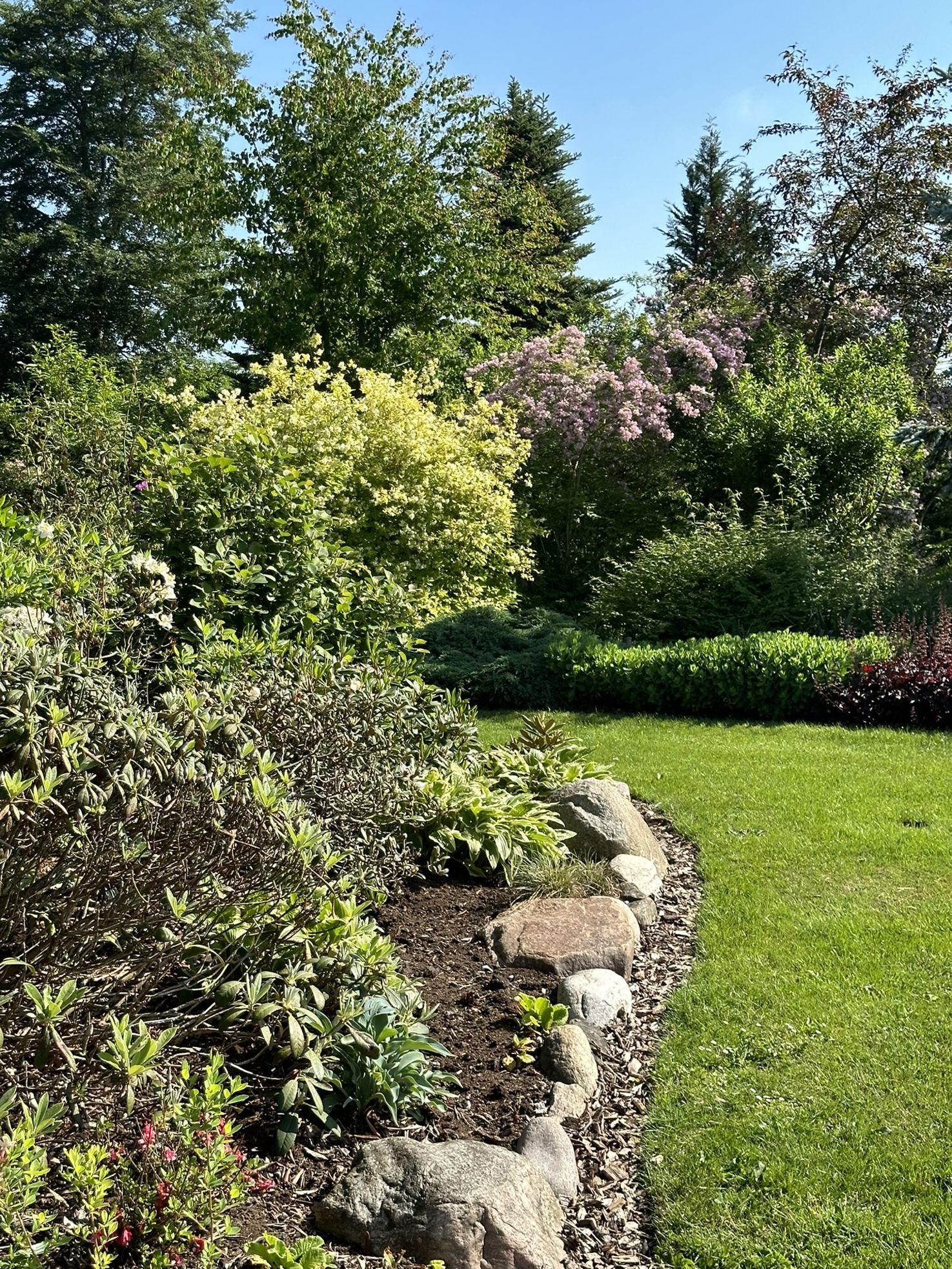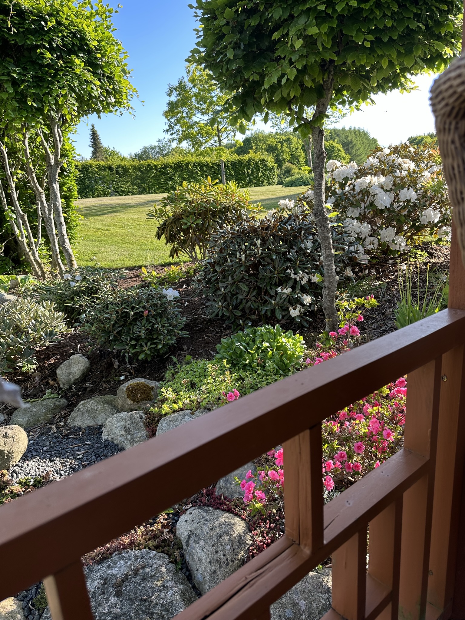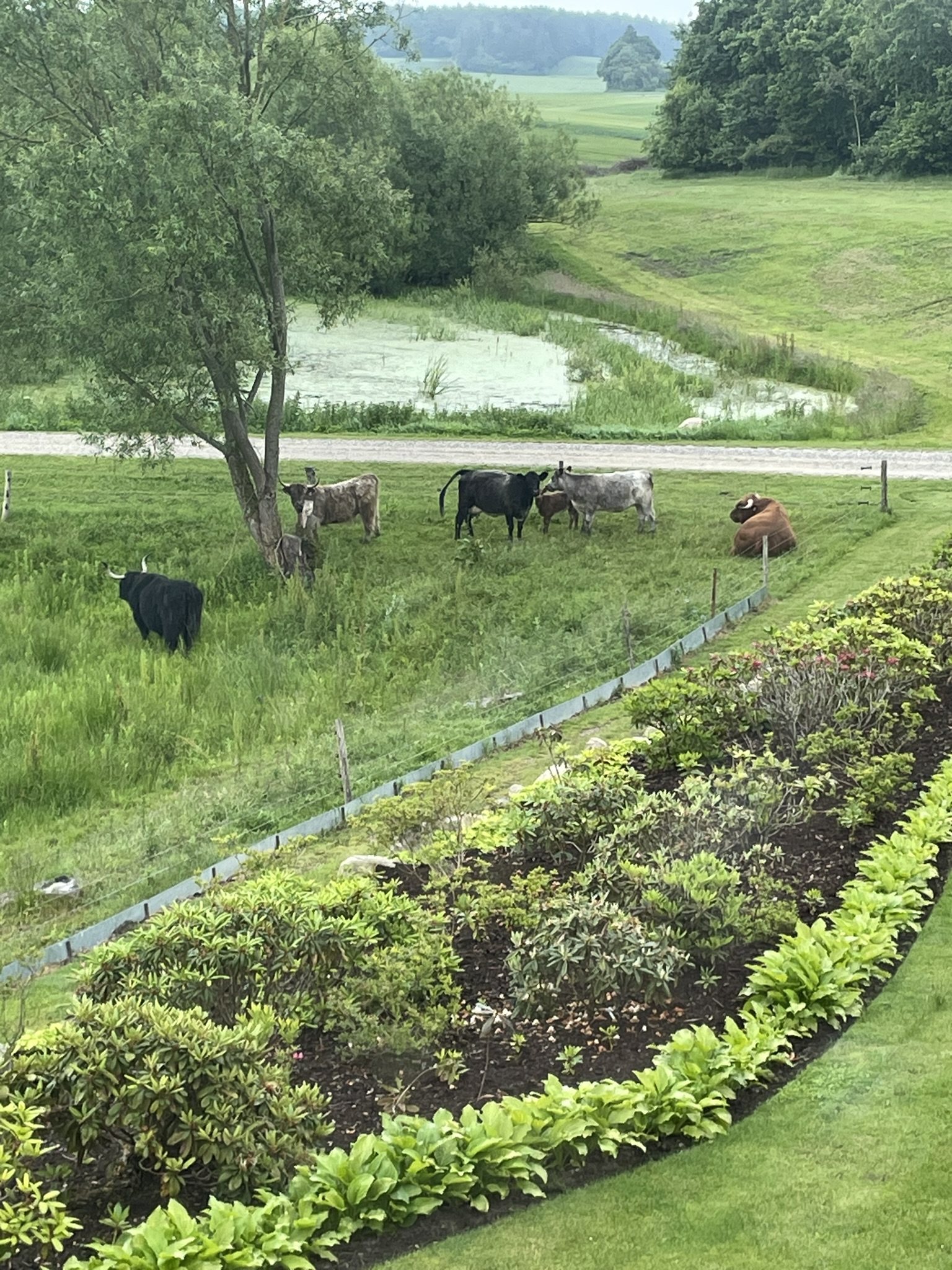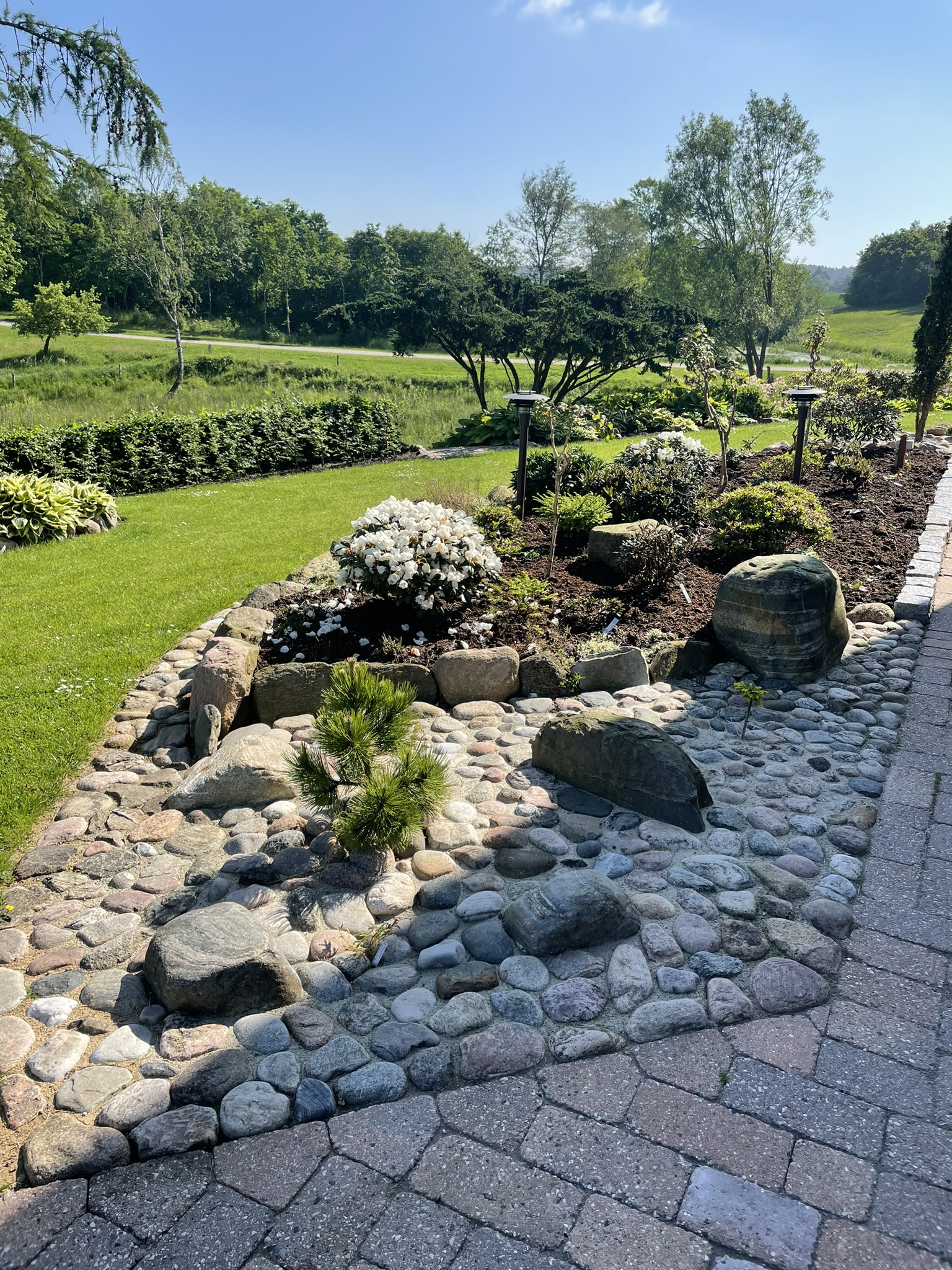 I 2008 startede vi for alvor på at udvikle vores have. Den er skabt hen af vejen, men samtidigt har vi forsøgt at bevare de store linjer. Ca 1200 Rhododendron og mange forskellige følgeplanter til surbund som f.eks. Trillium - arisaema -hosta og orchideer dominerer store dele af haven. Der er også blevet plads til stauder og mange spændende træer (vi er specielt glade for vores efterhånden pænt store Mammuttræ). Nyttehaven består af en køkkenhave i højbede - et drivhus - bærbuske og ikke mindst en frugthave med 40-50 sorter. Lige ved terrassen har vi anlagt et Japansk Inspireret haveafsnit med et lille tehus. Haven ligger i kuperet terræn mellem 2 gamle smeltevandsdale der fører ned til Villestrup Å. Vi har derfor langt stor vægt på samspillet mellem have og natur, således at man efter engelsk forbillede kan gå i haven og kigge ud på naturen.