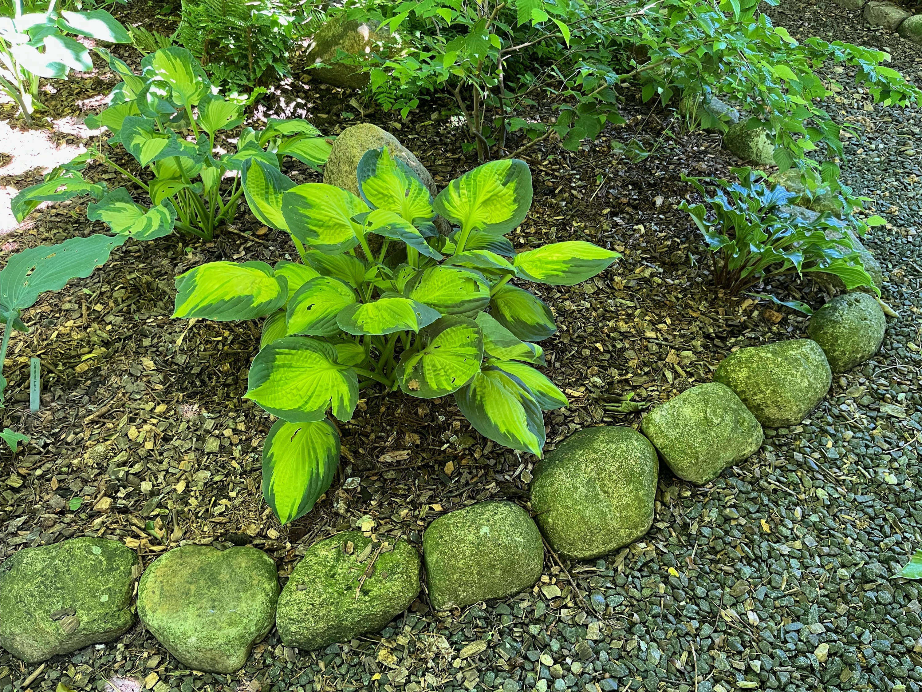 Haven er en stor landbohave med ca 600 forskellige hostaer, der er også en del forskellige bregner, samt mange træer og buske. Haven er under stadig forandring. Der er en del siddepladser rundt i haven, hvor man er velkommen til at nyde sin kaffe eller medbragte mad.