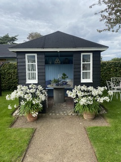 Vi har drivhus, lille havehus, pergola, vandbassin og mange hyggekroge