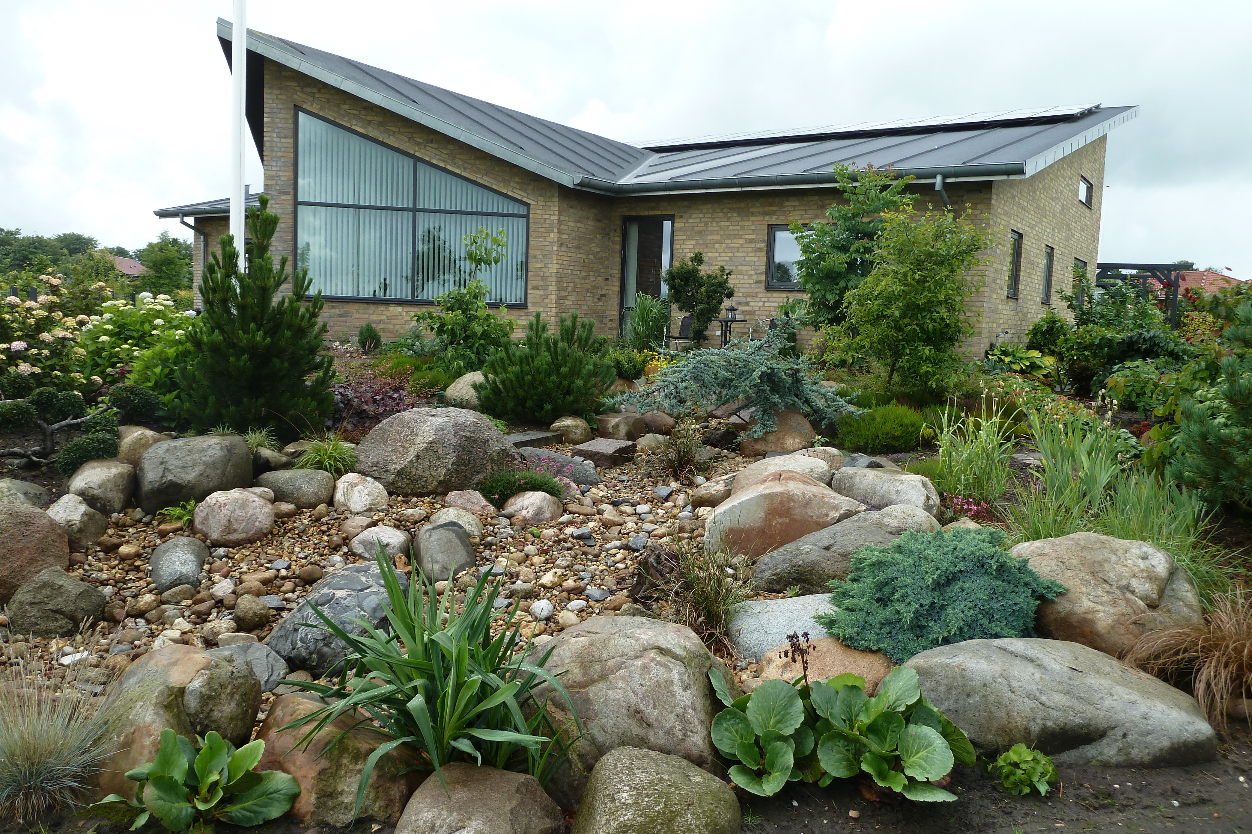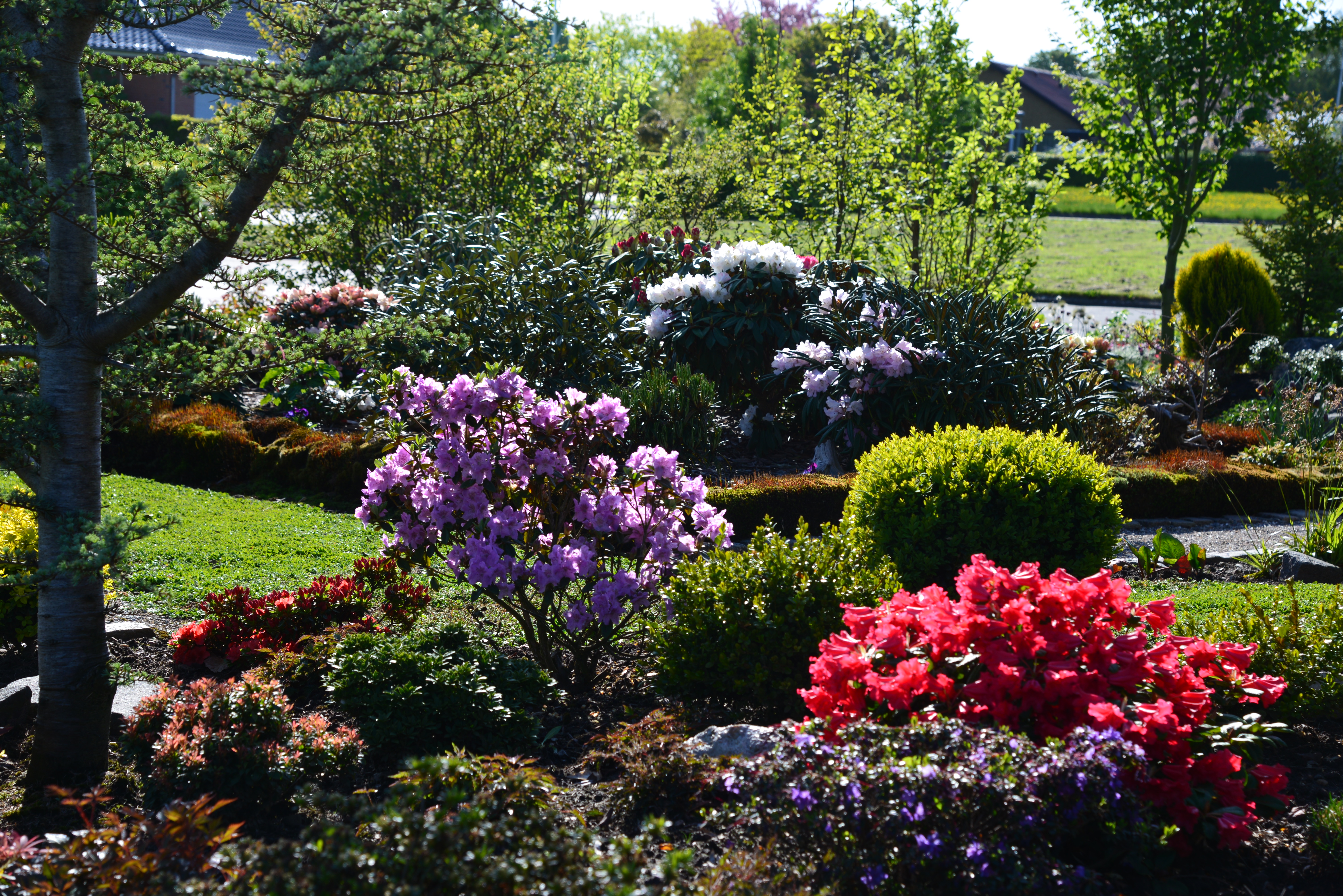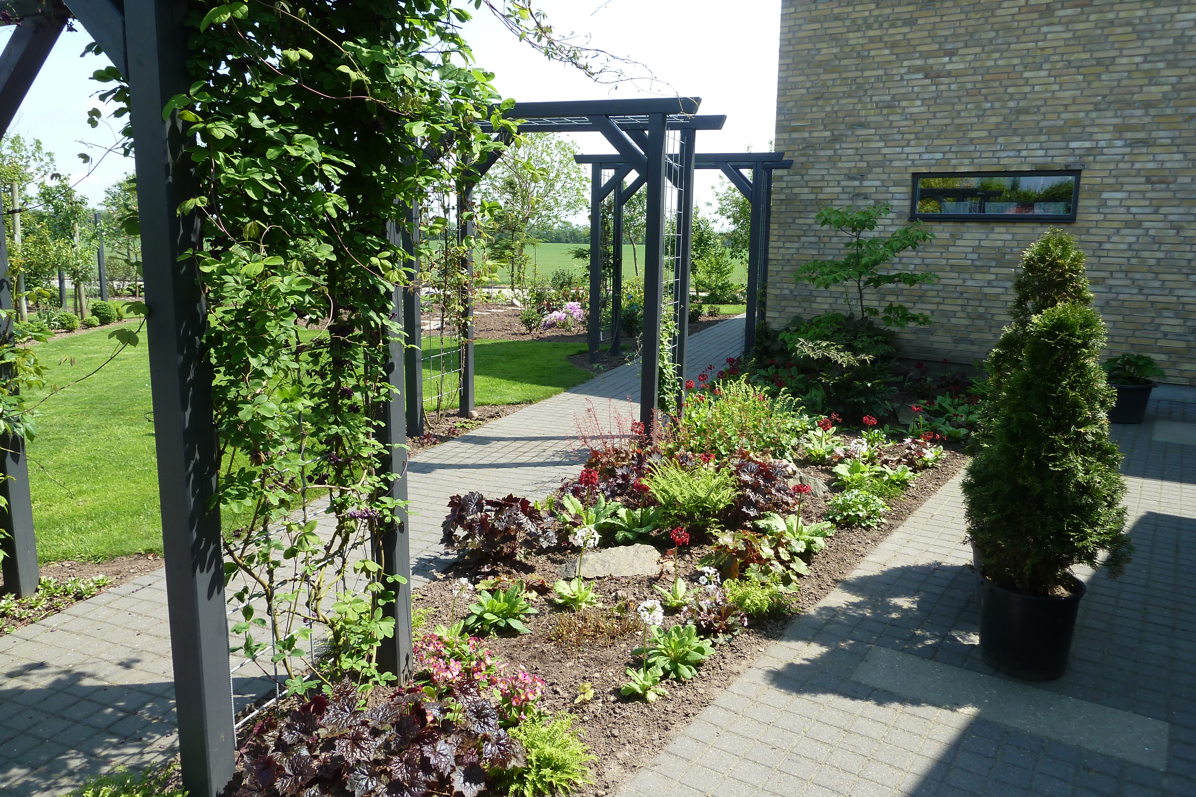 Have på 1700 m2 anlagt i 2011 , med et blandet indhold af spændende og ikke helt almindelige planter. Der er mange rhododendron , cornus , magnolia , styrax , strwartia , røn og eg , samt en del andre . Vi har en rosenhæk , hortensia , hosta , græsser samt " udtørret flodleje". Så er der køkkenhave , med frugttræer og buske, samt drivhus til blandt andet opformering af egne planter.