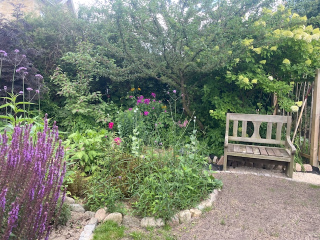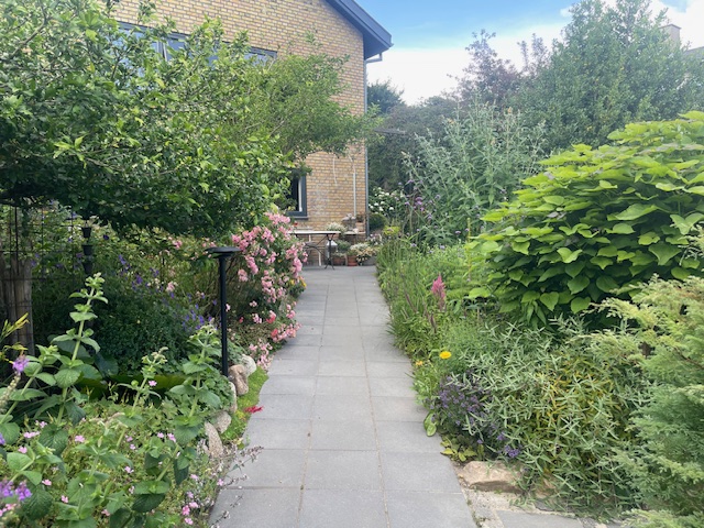 Min have er en almindelig parcelhus have med niveauer. Den er opdelt i flere rum, med forskellige “formål”. Haven er i evig udvikling da jeg altid er fuld af nye idéer. Minder måske mest om en cottage have med masser af farver. Mange frugtbuske, stauder og træer. Måske lidt rodet, da næsten alt er offer for mine hurtige påhit, men jeg elsker min skønne have.
