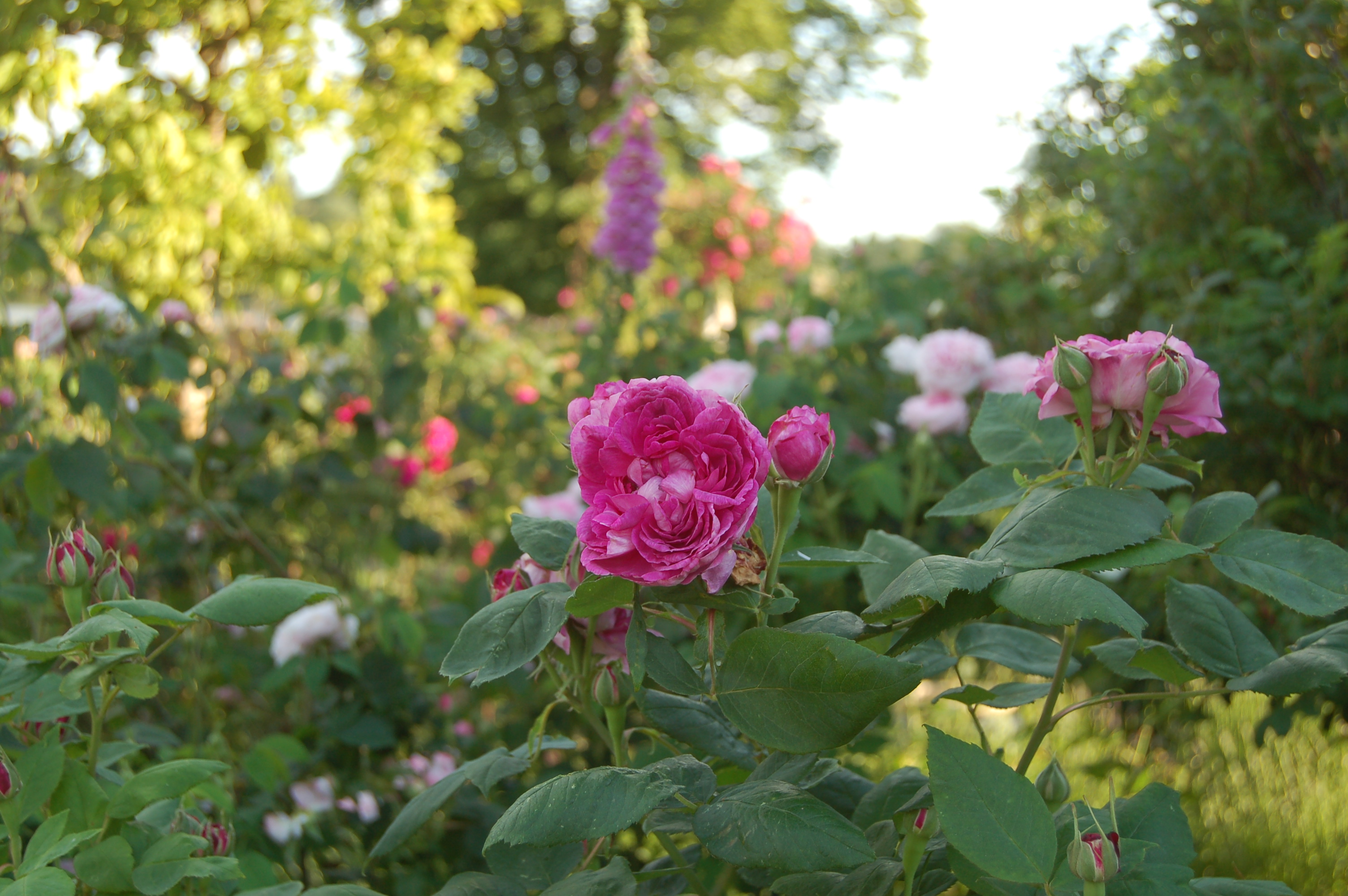 Åben rosenhave, hvor naturens skønhed og ro kan nydes af alle.