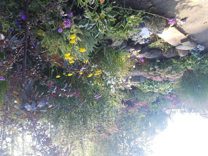 Haven indeholder et stort surbundsbed med mange forskellige Rhododendron og buske og træer, der trives i surbund. Et stort skovbed med bunddækkeplanter og forårsløg. Flere staudebede,som er holdt i forskellige farvetoner samt et et lidt større "vildt" bed. ud til vejen har vi valgt et stenbed med forskellige stedsegrønne planter og stenbedsplanter.