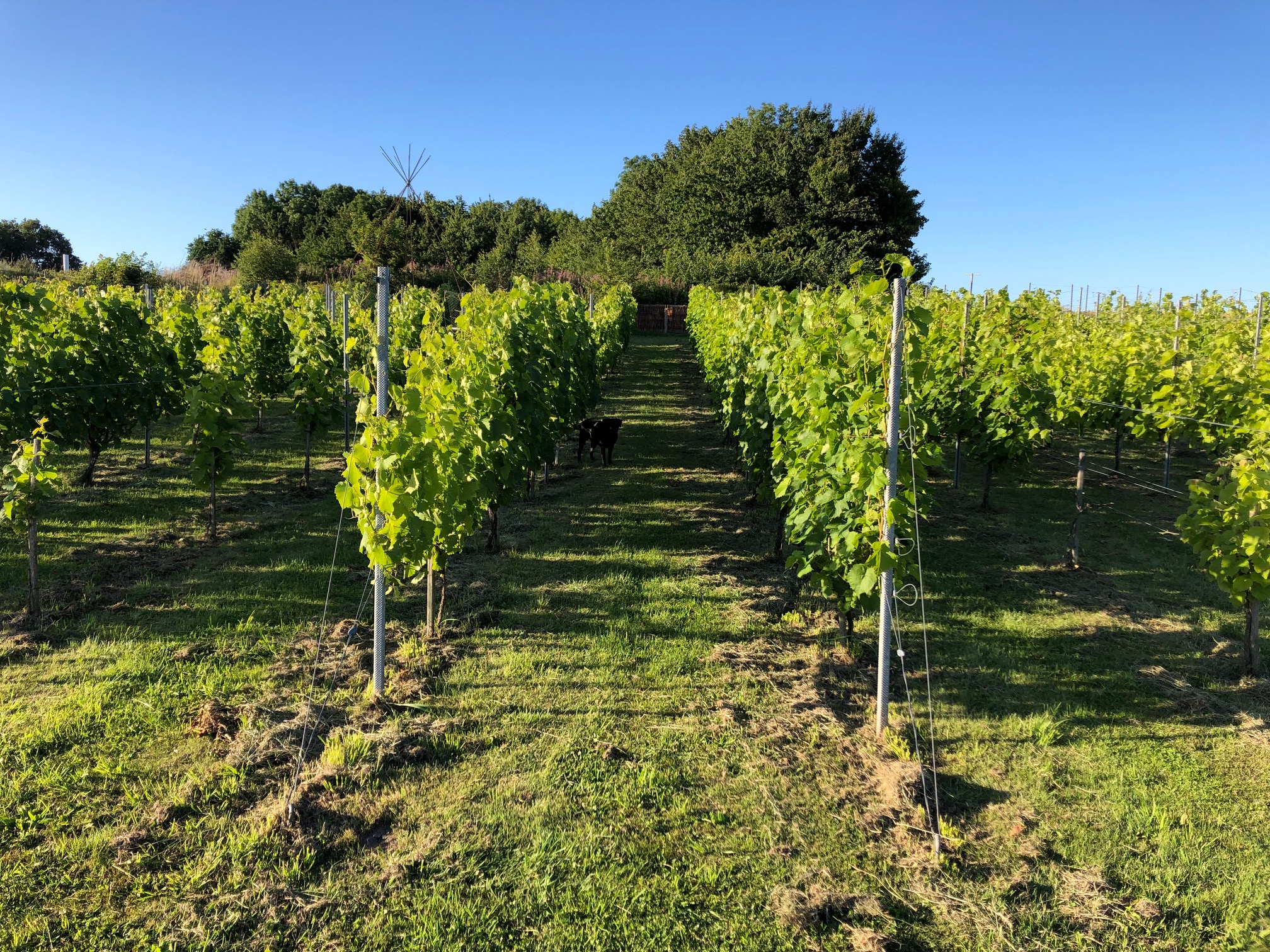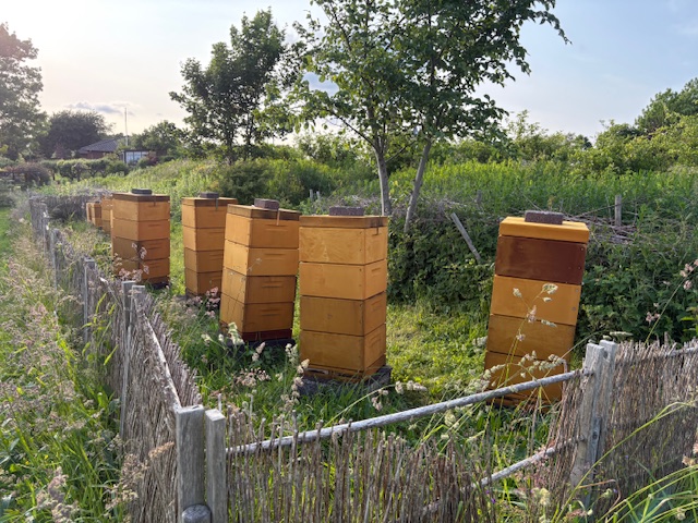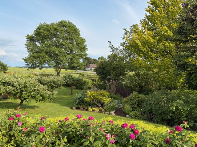 Haven er nu over 30 år og meget alsidig. Vi har ikke en forkærlighed for bestemte planter, men tilstræber variation, blomster hele året og gerne gode nektar- og pollen planter. Have og vinmark dyrkes uden brug af gift og overvejende efter økologiske principper. Det betyder også at der er områder hvor de vilde planter får lov at stå og at der godt ind i mellem kan være ukrudt mellem fliserne og i blomsterbedene. Vi har mange forskellige træer og buske, roser og mange forskellige stauder og surbundplanter. En stor havedam tiltrækker mange insekter og fugle, og haven tilbyder levesteder i stengærde, kvasbunker og flere brændestakke/dødt ved. Havens lille hønsehold giver dejlige æg og god gødning, og de 6-8 bifamilier sørger for en god bestøvning og at vi kan høste lækker honning. Rundt i haven er der mange siddepladser, så haven kan nydes fra mange forskellige vinkler. Fra terrassen foran huset og fra vores orangeri er der en fantastisk udsigt over landskabet ved Mols Bjerge, skoven og bunden af Kaløvig. Vinmarken er etableret i 2015 med ca. 300 vinstokke fordelt på 5 sorter - 3 røde (Rondo, Regent, Leon Millot) og 2 grønne (Solaris og Orion) druesorter. Siden 2018 har vi høstet og selv fremstillet vin.