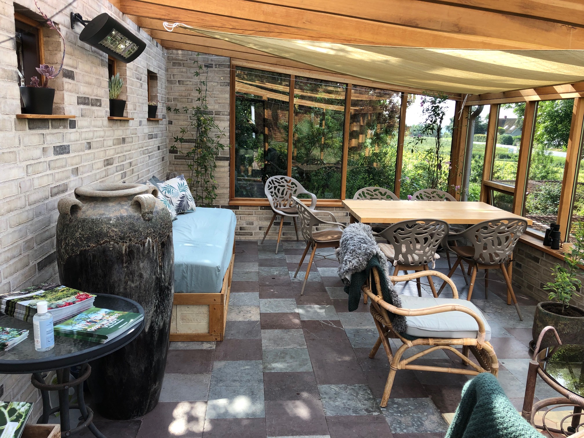 Hvis det står i havebeskrivelse så er det i orden for gæsterne at slå sig ned lidt længere tid og spise medbragt mad. Det er ikke sikkert, der er stole og borde, så vær OBS på at tage noget med at sidde på.