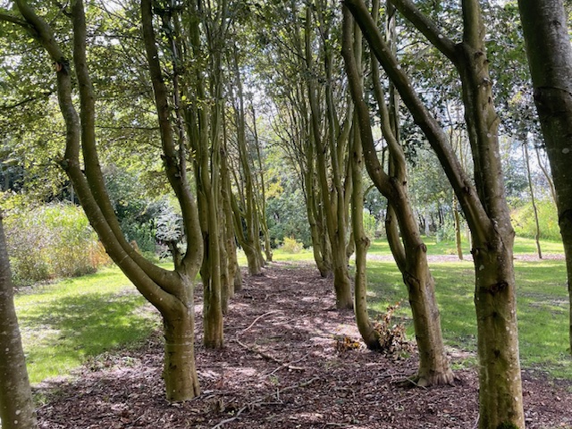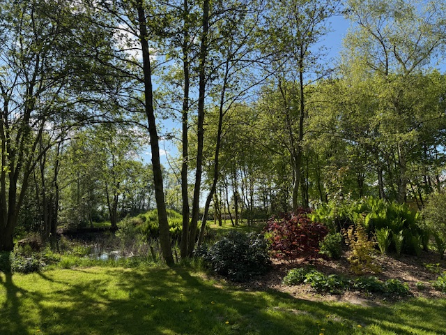 Baghaven føles næsten som en skov, hvor de høje bøgetræer skaber en følelse af at være omgivet af naturen. Her finder man også en sø, bede og en køkkenhave. Baghaven er fyldt med hyggelige kroge og bærer tydelige spor af de rådyr, der ofte besøger stedet.
