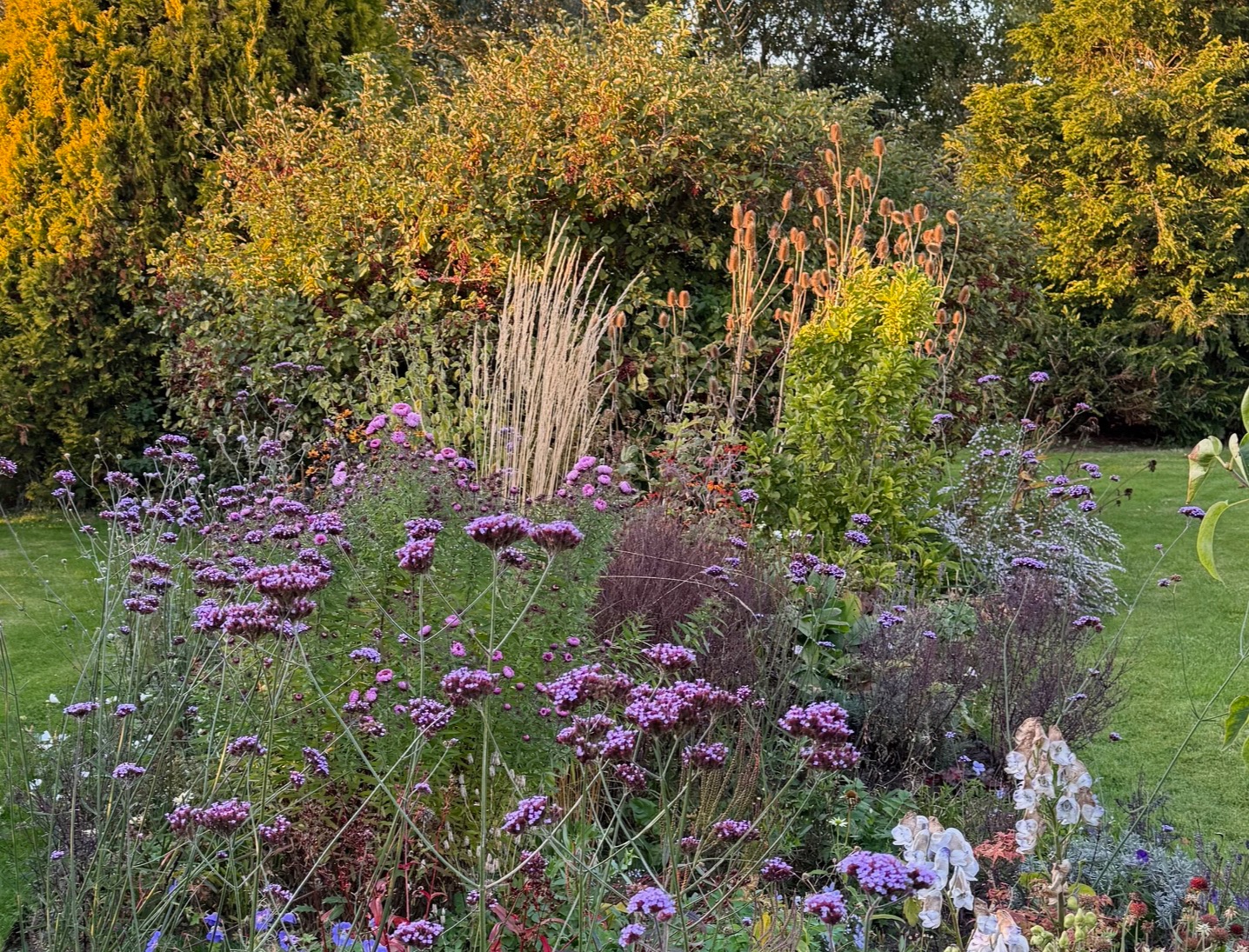 Gårdhaven, som jeg fik anlagt for to år siden, rummer over 100 stauder, og jeg har samtidig bevaret nogle buske, der har været her i længere tid.