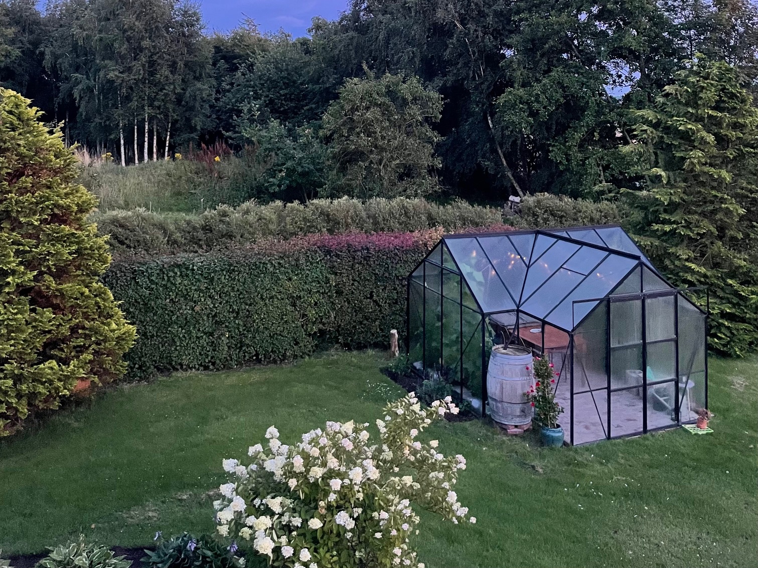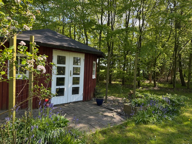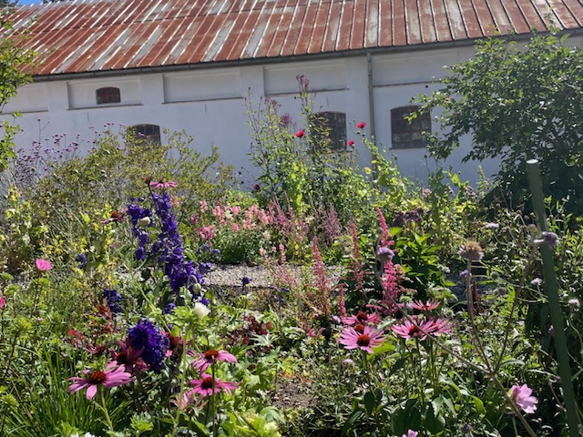 Haven ligger ude på landet, hvor der er højt til himlen, og ukrudtet breder sig mellem stauderne i bedene.