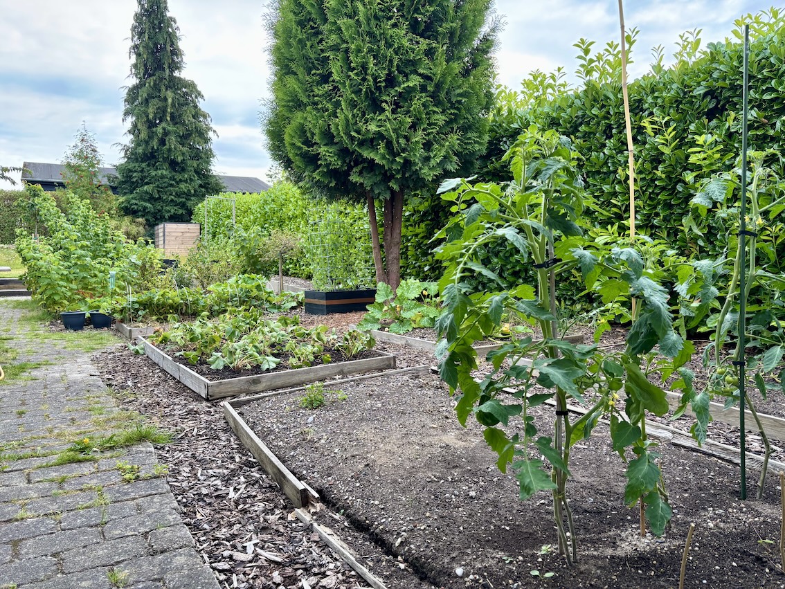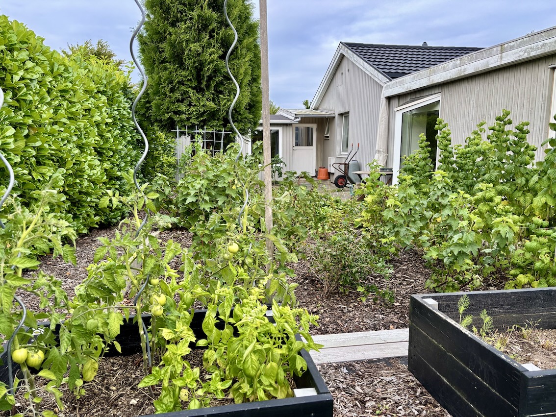 Køkkenhaven er med en del bærbuske og fem bede med grøntsager. No-dig inspireret. Det kniber med at holde flow i afgrøderne og min komposthåndtering er under opbygning. Snegle er et kæmpe problem. Jeg burde ofre mere tid på denne afdeling, men meget andet trækker på energien og tiden, så det må gå som det går. Glæden ved at nyde egne afgrøder er dog stor!