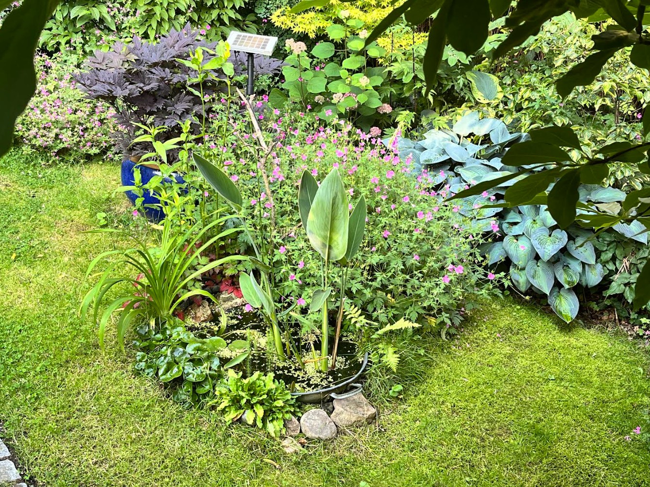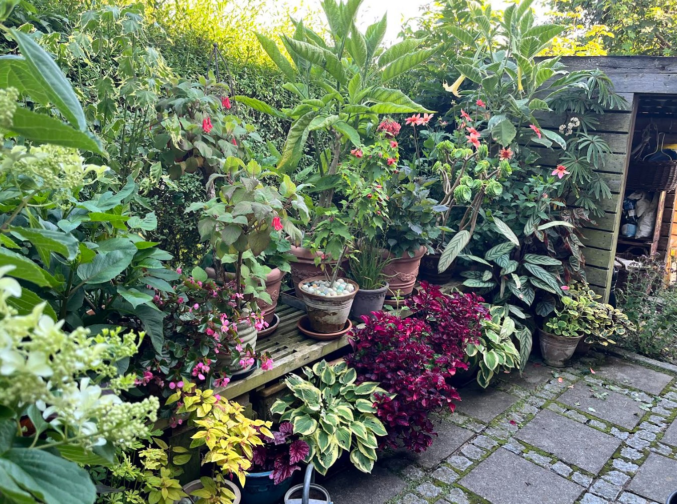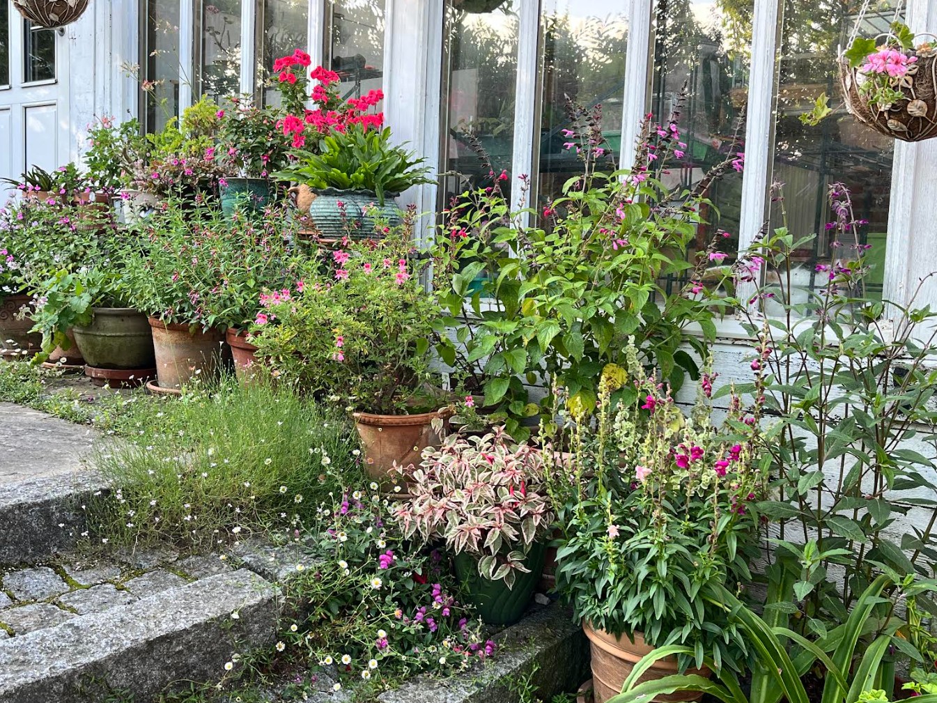 Mange smukke blomsterbede, eksotiske krukkevækster i hobevis, stort skønt drivhus og spændende planter.