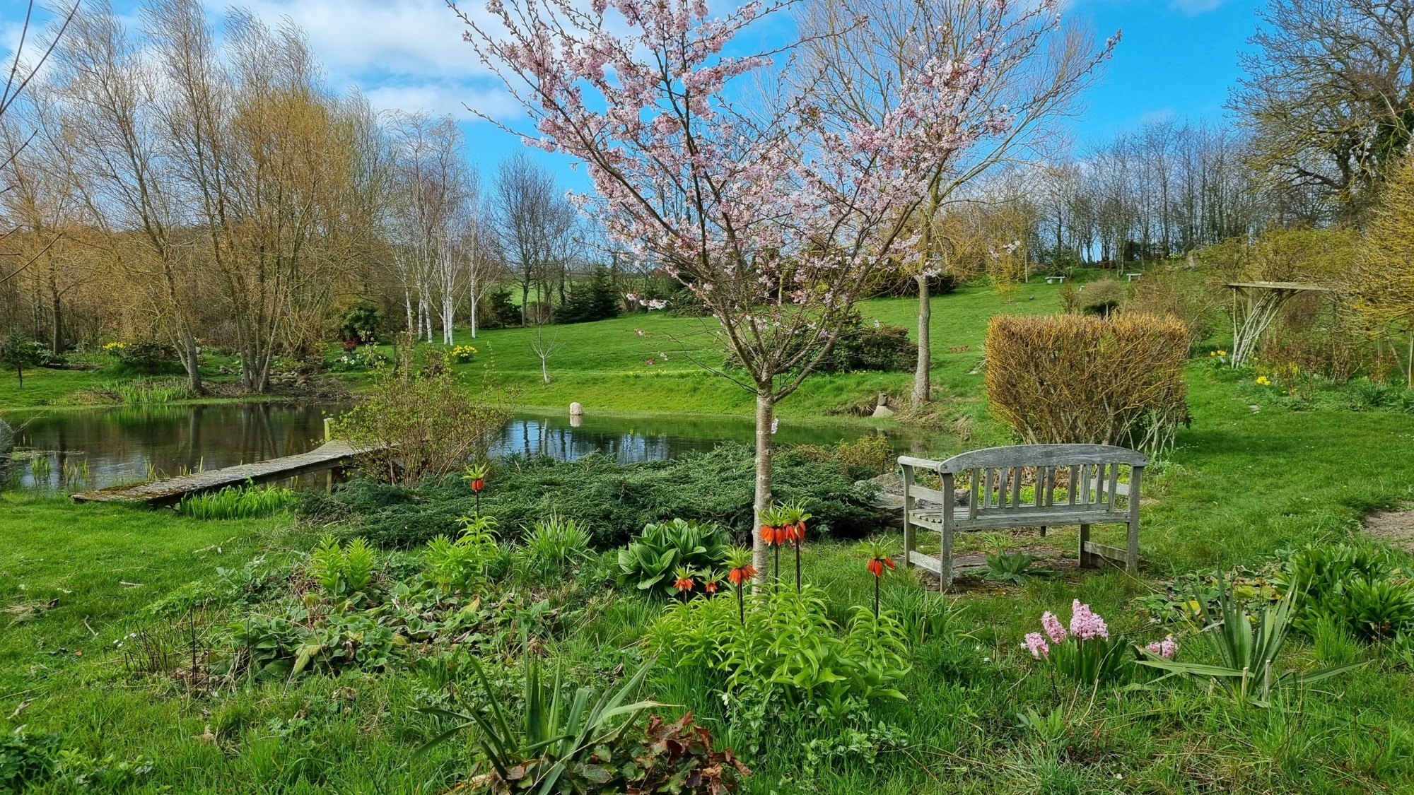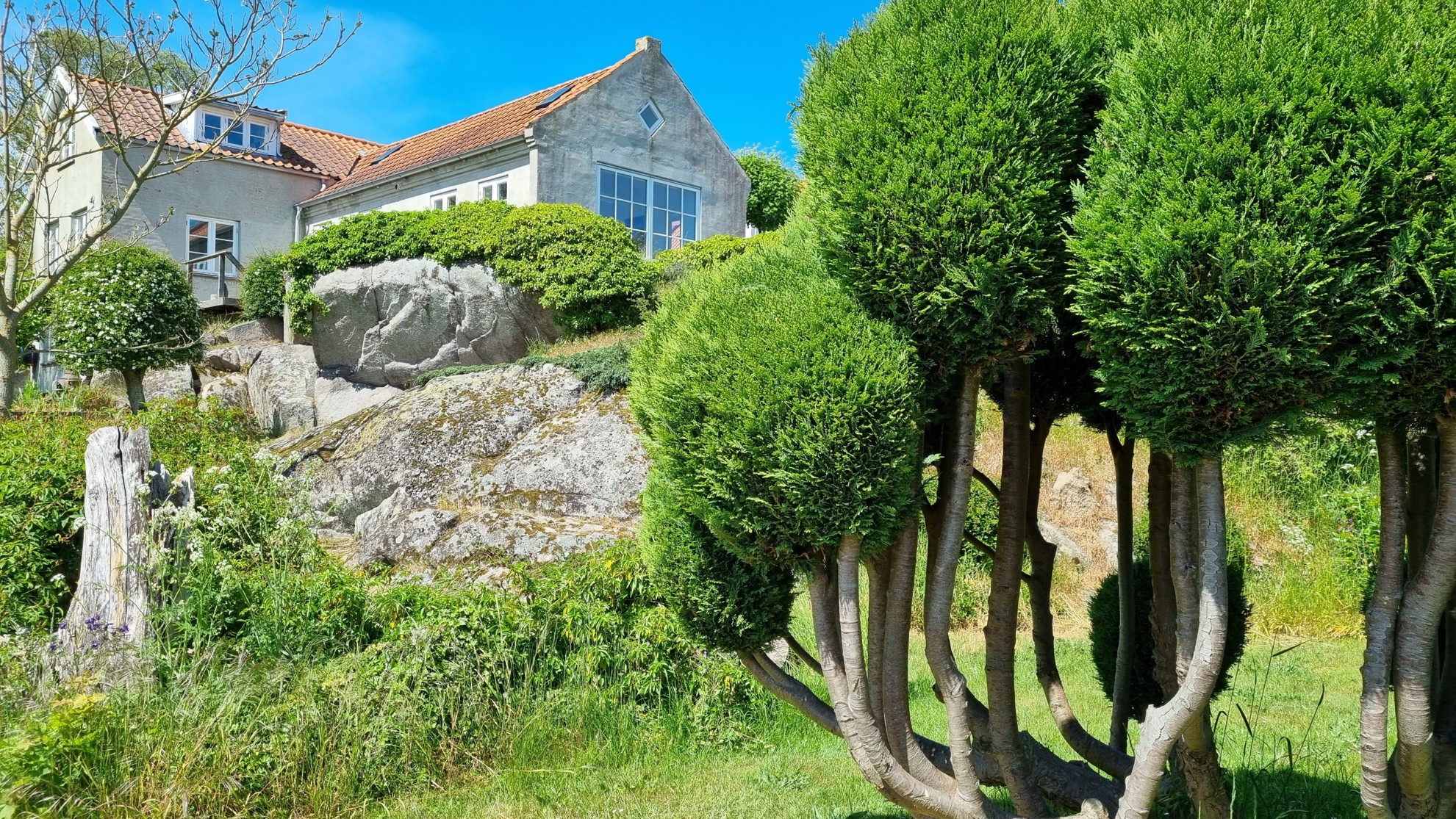 Stor landbohave 33.000 m2 med klipper, søer i mange niveauer. I 2005 begyndte mark at blive til park med vægt på giftfri biodiversitet, levesteder for padder, insekter, fugle mm. Mange haverum med opholdspladser, nogle trimmes andre vokser vildt med udgåede stammer, kvashegn, skovområde, park, insekteng, solceller, enebær, rododendron, roser, træpæoner, hortensier, flere slags pile, birke, formklippede tuja og eksotiske træer m.m. Skulpturer i granit, pavilloner og havudsigt fra det meste af haven.