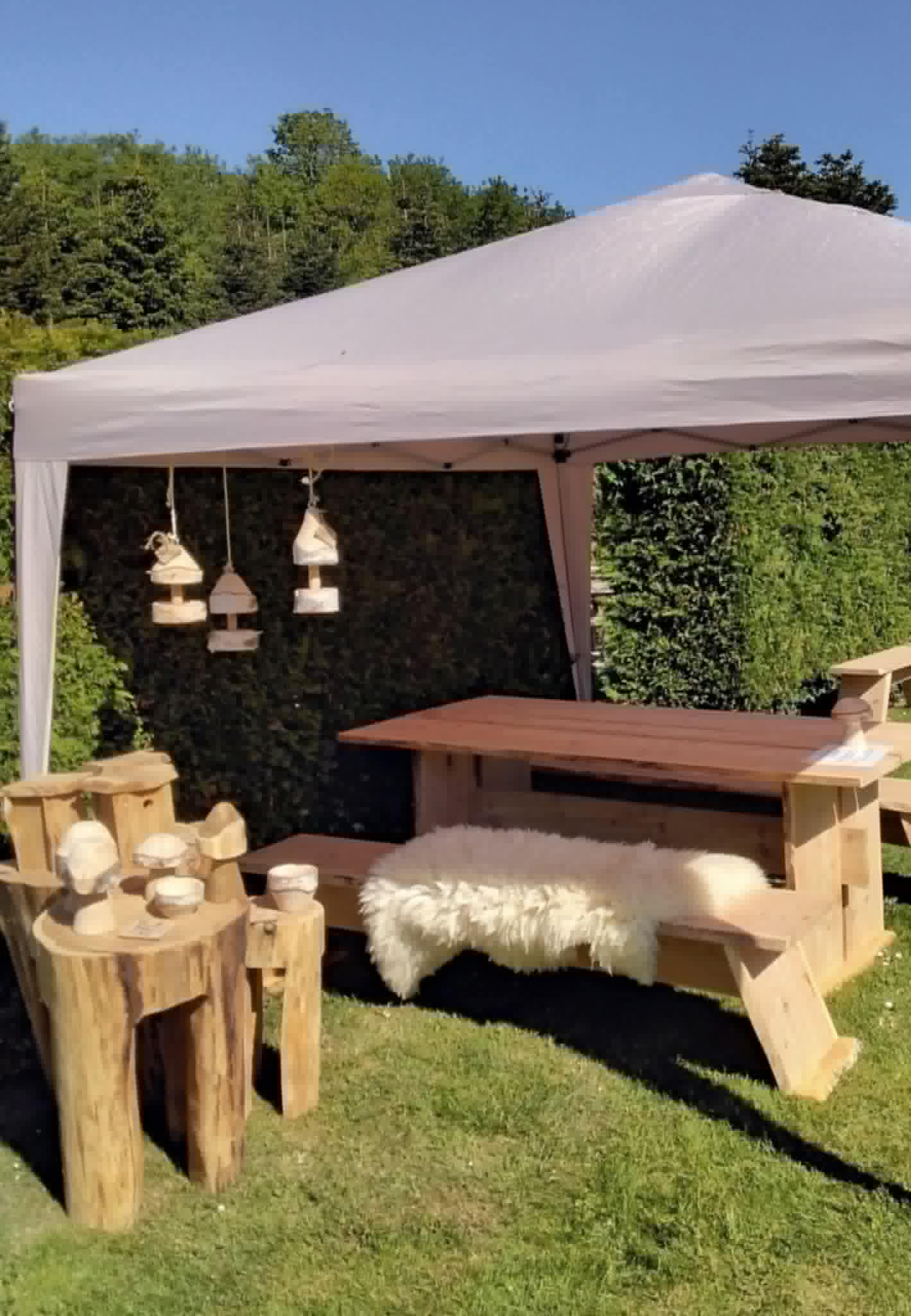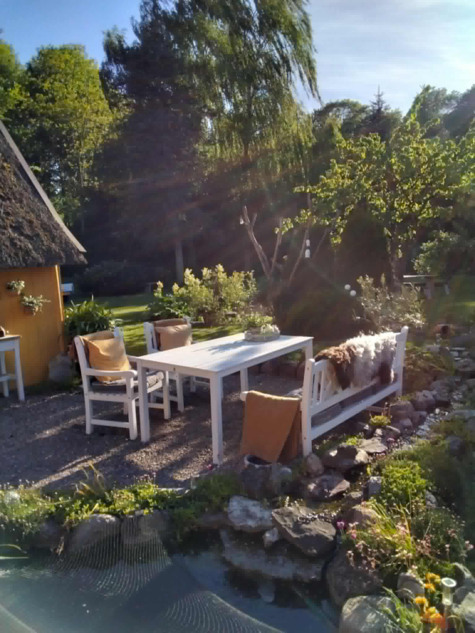 Hvis det står i havebeskrivelse så er det i orden for gæsterne at slå sig ned lidt længere tid og spise medbragt mad. Det er ikke sikkert, der er stole og borde, så vær OBS på at tage noget med at sidde på.