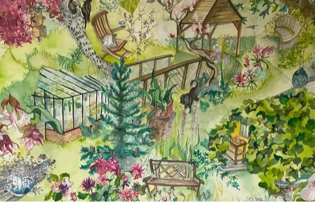 Haven er engelsk inspireret med masser af stier og forskellige rum