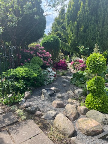 Masser af spændende og sjældne planter, blomster, buske og træer samlet igennem mange år, kan findes i denne have.