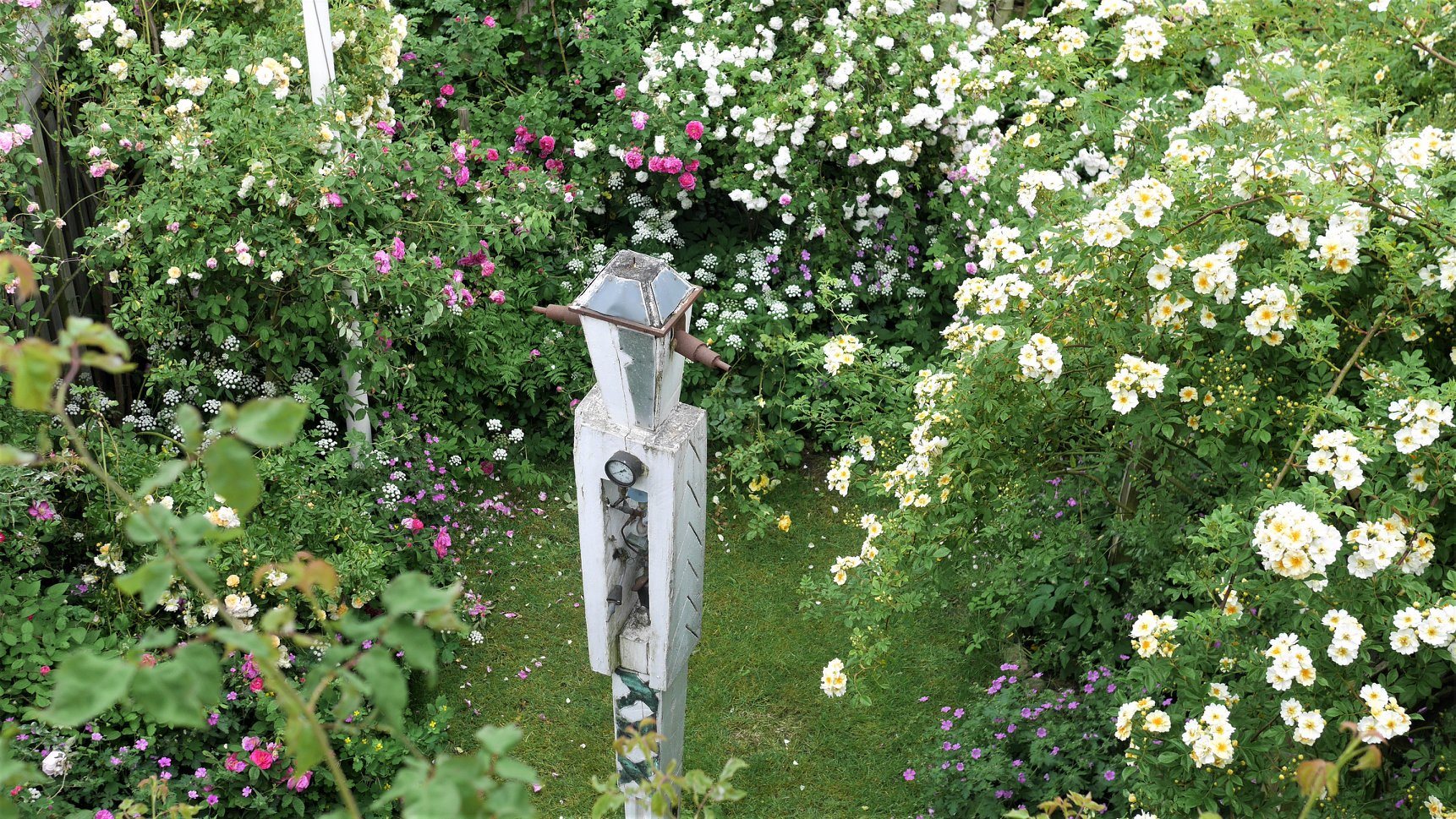 40 år gl. have med mange rum. Forhave, rosenhave, rododendronhave, aftenterrasse, staudehave, arbejdshave, drivhus mv.