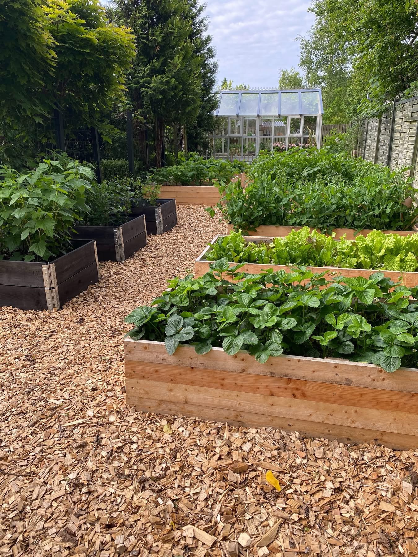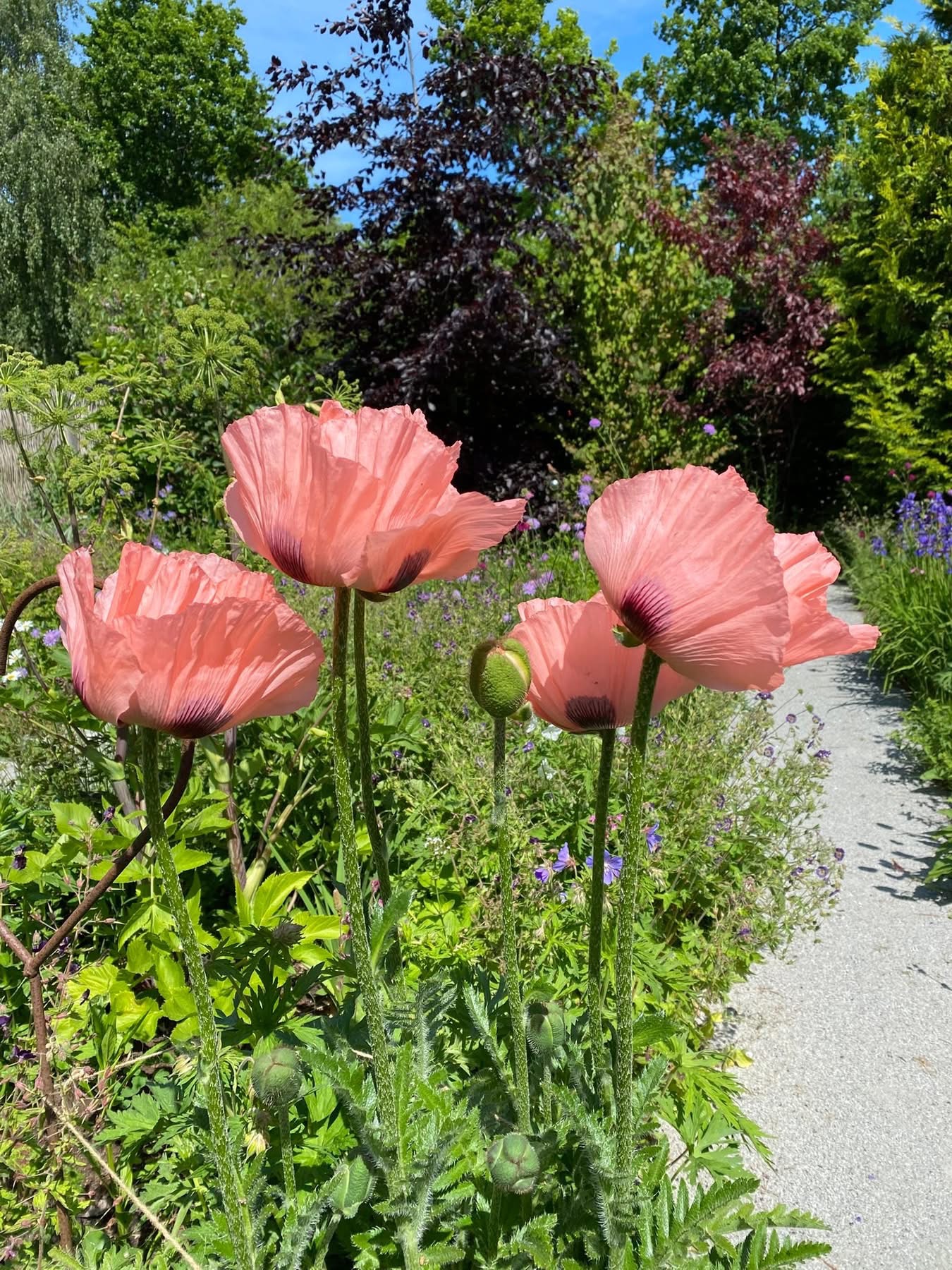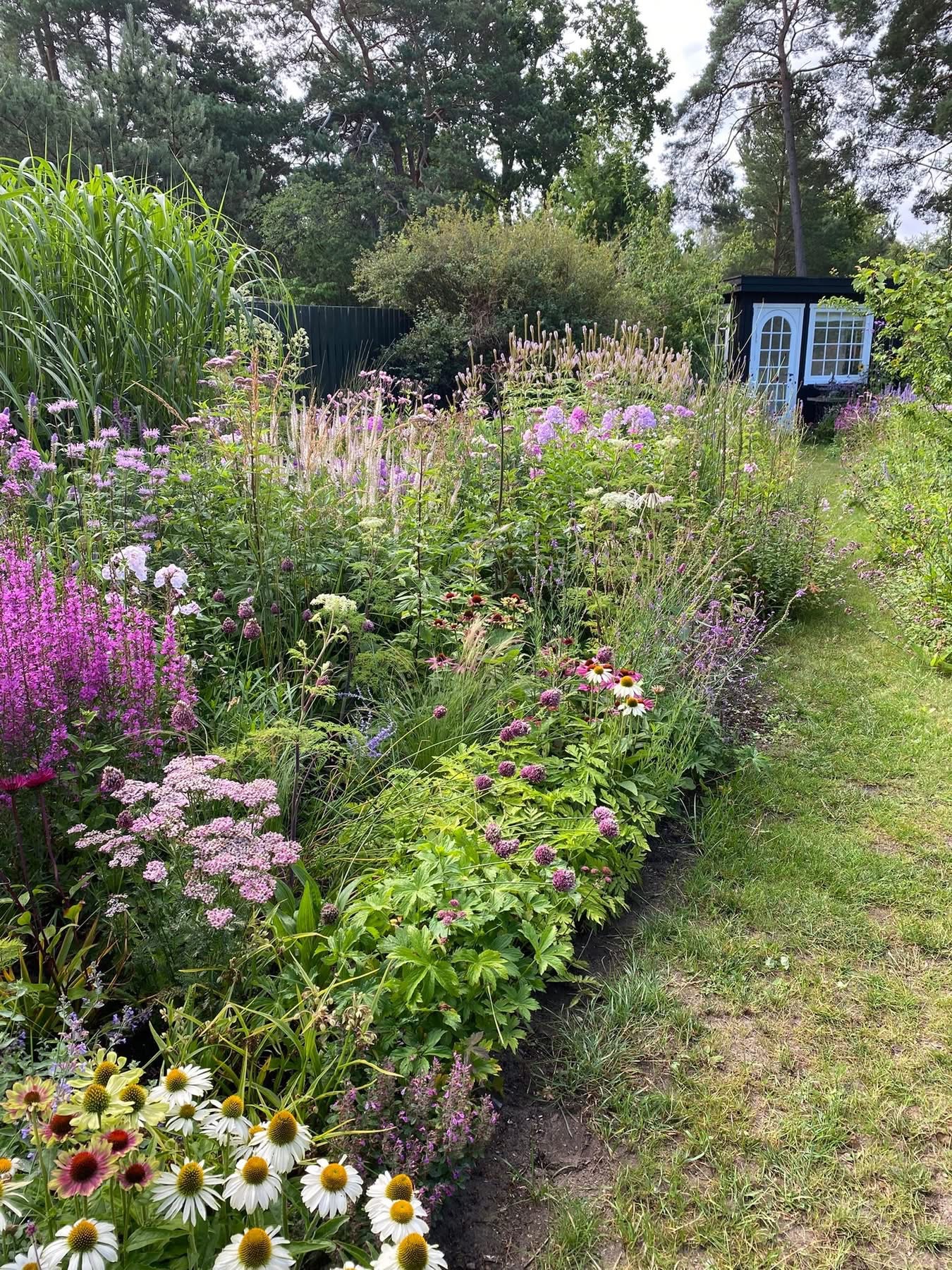 Romantisk staudehave, med store staudebed, køkkenhave m højbed og plantesalg. Lille vingård