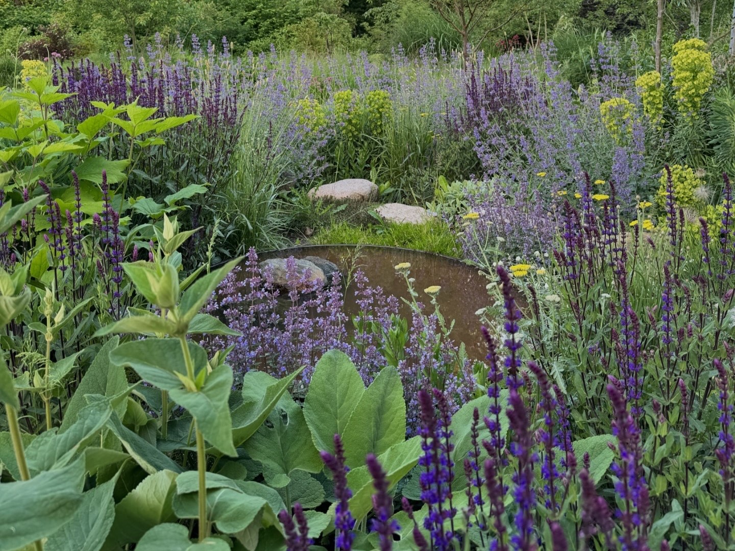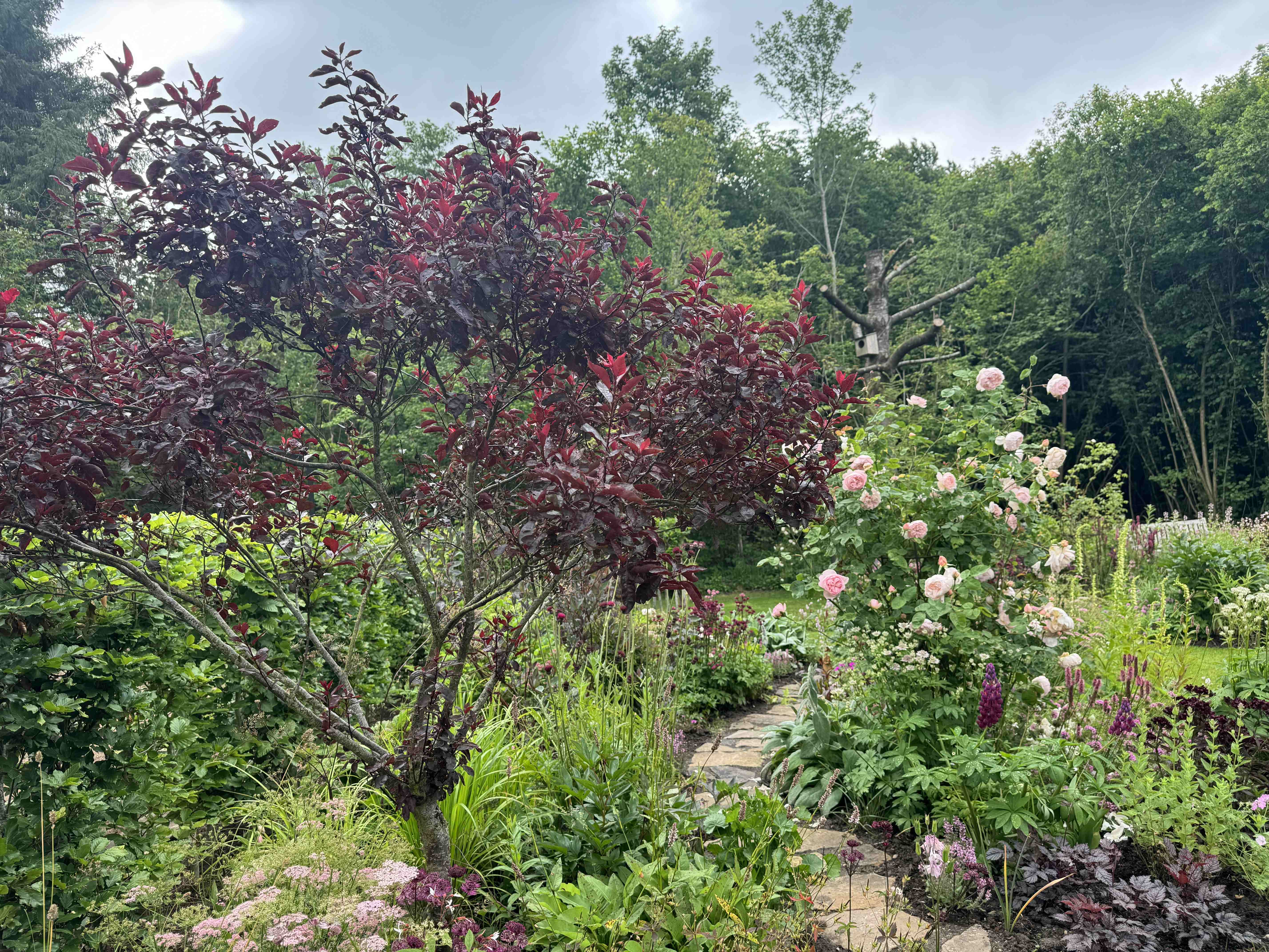 Havedesignerens egen have. Stor have med mange rum i smukke omgivelser ved skov og fjord.