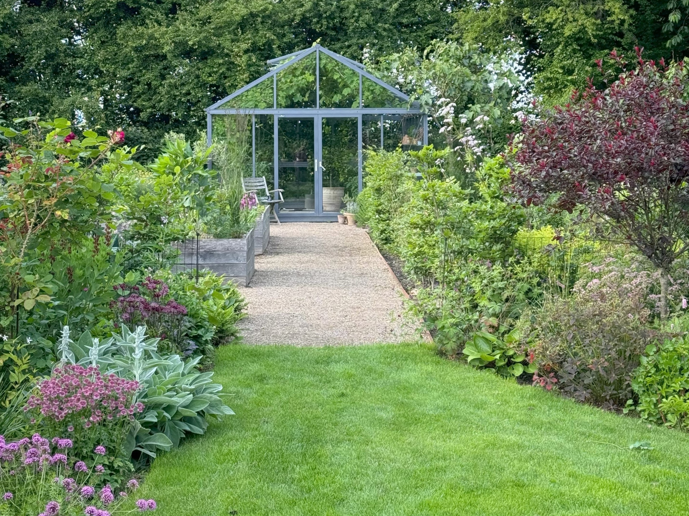 Dorthe Vinther, som bor i haven sammen med sin mand, er plantenørd og havedesigner, og haven bruges derfor også til at teste nye planter og eksperimentere med forskellige plantekombinationer.