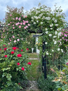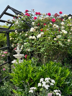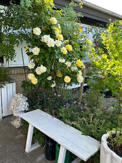 En hyggelig parcelhushave fyldt med blomster til bristepunktet. Der er ca. 400 roser og mindst lige så mange stauder. En del træer og buske. Mange hyggelige siddepladser, hvor lyden fra springvandene kan nydes. Haven er insektvenlig og er fyldt med summen fra bier og smukke sommerfugle. Drivhuset er fyldt med tomater, agurker og chilier. Der er altid overskudsplanter fra haven til salg, bl.a. roser, sommerfuglebuske, figen og stauder.