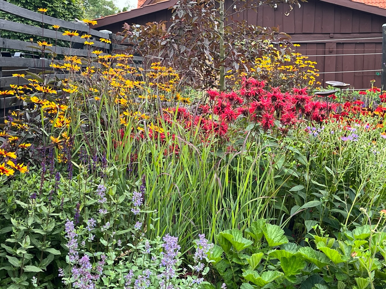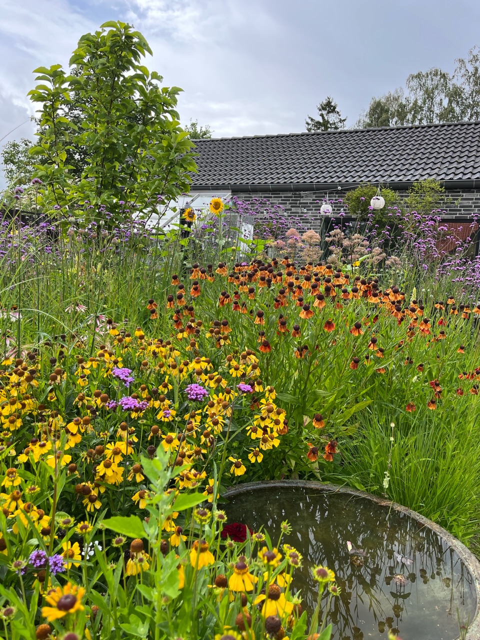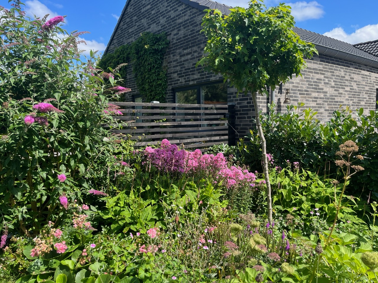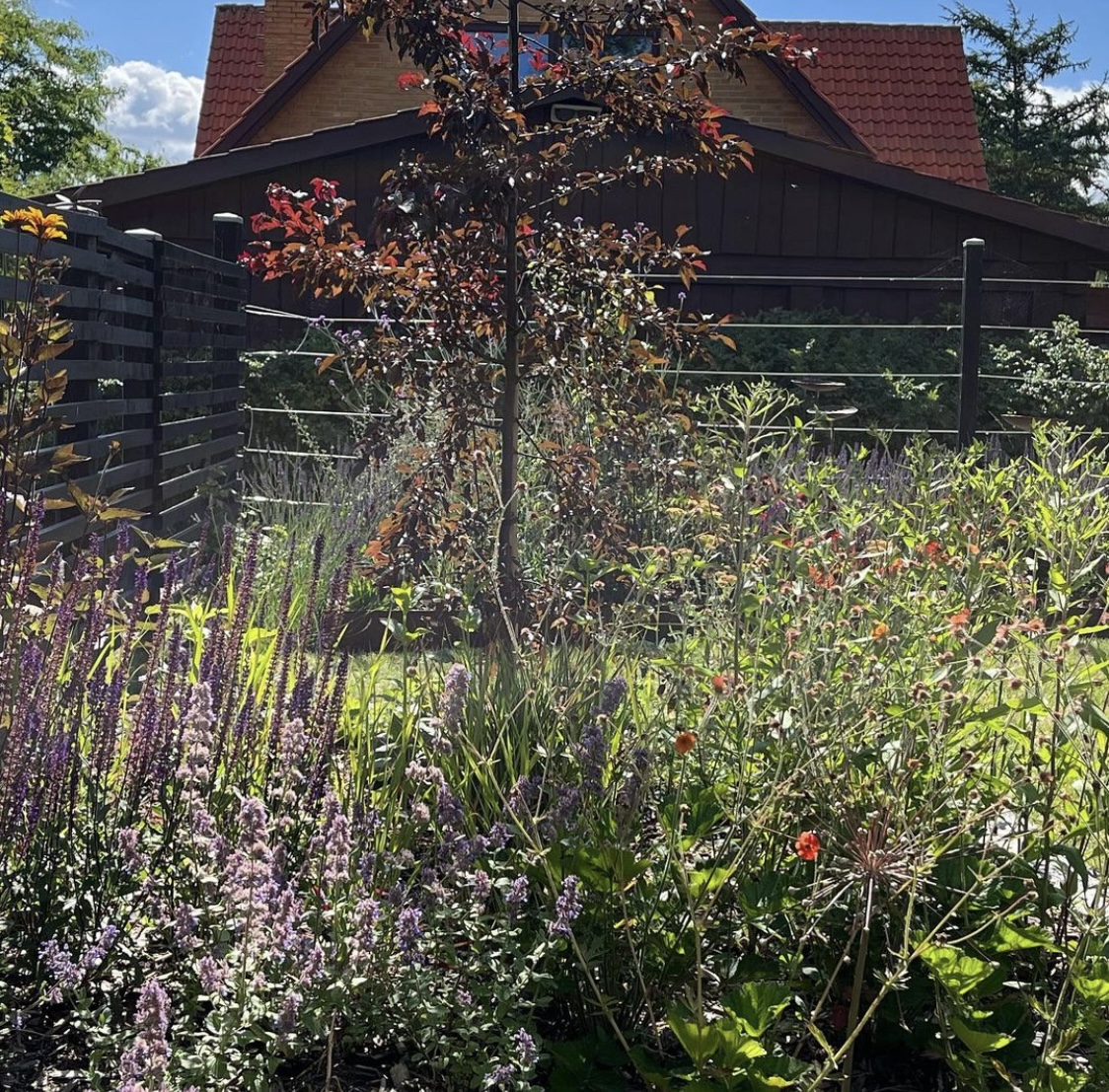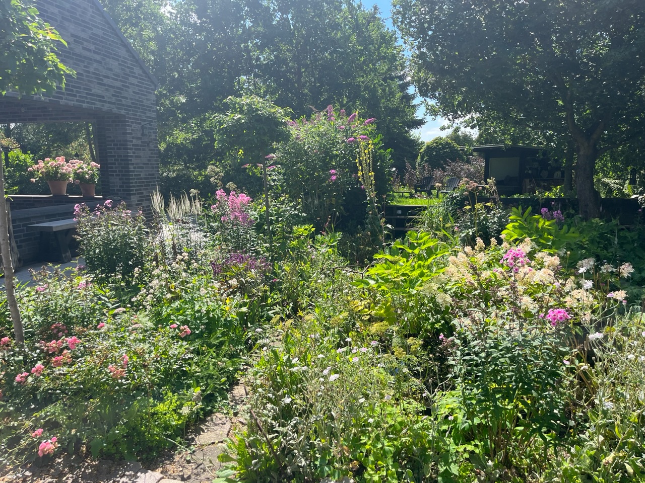 2500 kvm nyere villahave på grænsen mellem by, marker og skov. Anlagt i 2017 og under 'løbende revision' for en have bliver jo aldrig rigtig færdig, vel? Pergola, 130 kvm træterrasse, vild eng, drivhus og store staudebede, inspireret af grøftekanter og en lille smule af Piet Oudolf. Følg med på instagram: Slottet_i_slukefter